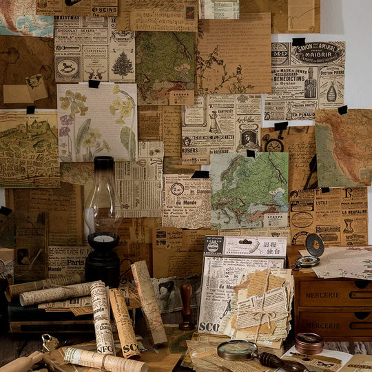Yoofun 30 sheets Vintage Material Paper for Scrapbooking Journal Diary Collage Junk Background Decoration Retro Stationery