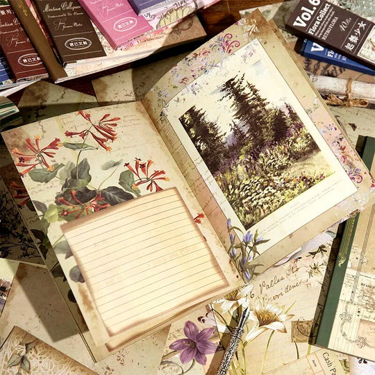 Yoofun 40 Unrepeated Large Size Vintage Material Paper Double Sided Material Book Retro Scrapbooking Journaling Decor Stationery