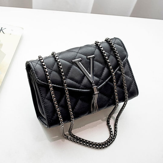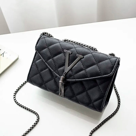 Black Luxury Handbags And Purse Women PU Leather Messenger Shoulder Bag Plaid Female Crossbody Bag Tassel Quilted Brand