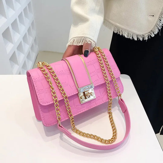 1pc New Chain Buckle Shoulder Bag For Women Square Pu Material Fashion Popular Exquisite Texture For Daily Outings Square Bag