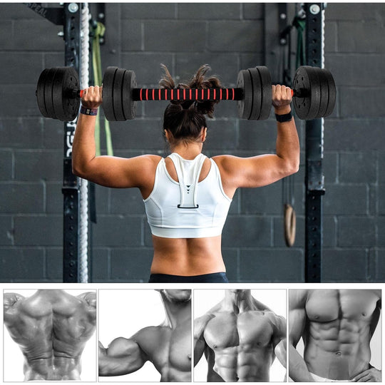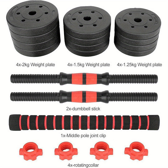20KG Dumbbells Barbell Set Adjustable Dumbbells Weights Set with Connecting Rod 2 in 1 Dumbells and Barbell Set Weight Lifting Training Equipment Set for Men Women Home Fitness or Gym Workout