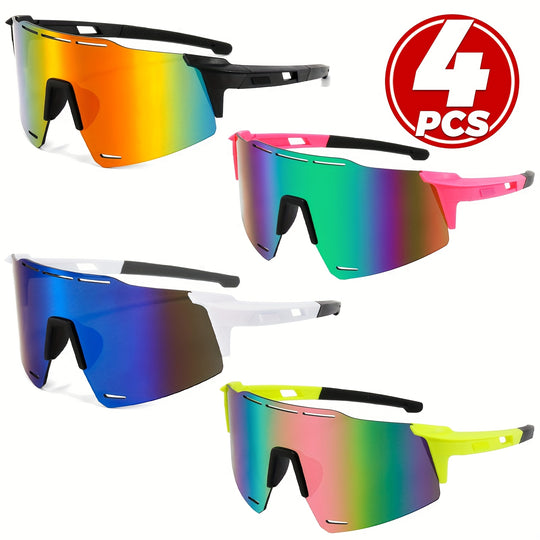 4-Pack Ultra-Light Frameless Fashion Glasses for Men and Women – Vibrant Lens Colors in Blue, Black, Pink, Yellow with Durable PC Material for Casual Attire
