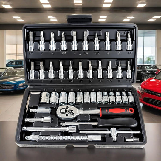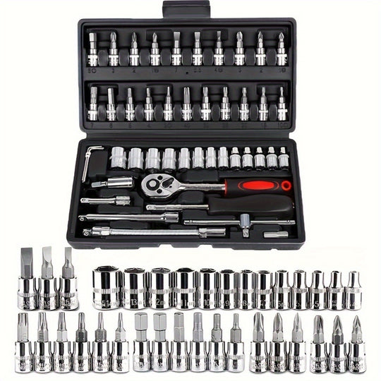 Introducing the Black 46 pcs Outdoor Car Emergency Repair Tool Kit - the ultimate set for any outdoor enthusiast! This versatile kit includes all the essential tools for emergency repairs on your car, motorcycle, or bicycle....Sale price £32.99Regular price £48.99 -