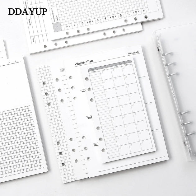 A5 A6 Loose Leaf Notebook Refill Spiral Binder Inner Page Diary Weekly Monthly Planner To Do List Line Dot Grid Inside Paper