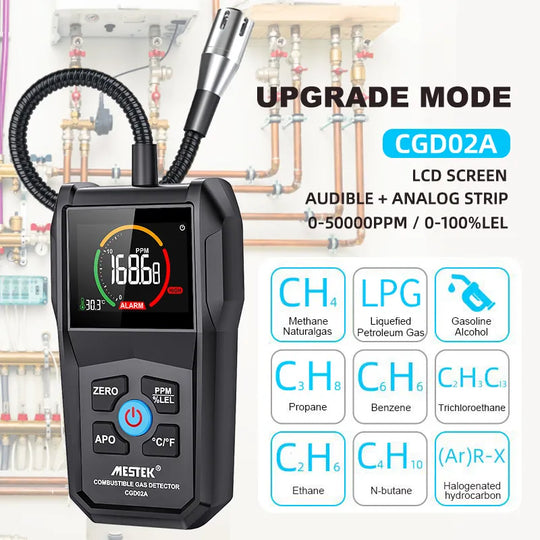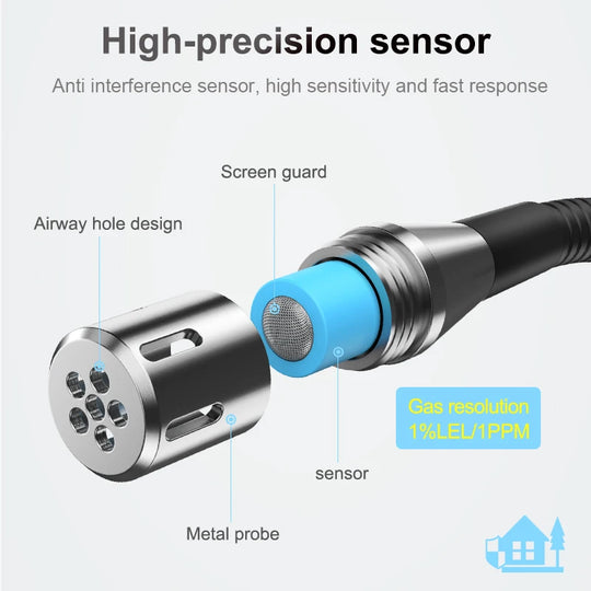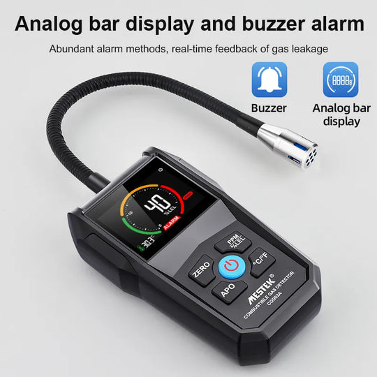 Gas Leak Detector Flammable Natural Gas Detector Combustible Methane LPG Alcohol Analyzer PPM LEL Buzzer Alarm with Flex Probe