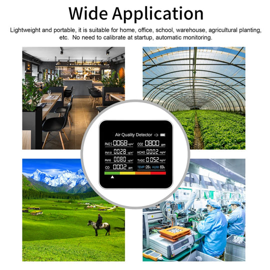 9 In 1 Air Quality Monitor CO2 Meter CO TVOC HCHO PM2.5 PM1.0 PM10 Temperature And Humidity Measurement Carbon Dioxide Detector