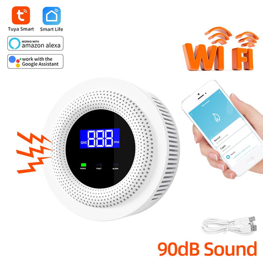 Tuya WiFi gas leak detector leakage of LPG gas sensor alarm sound and 433 MHZ remote control intelligent household security prot