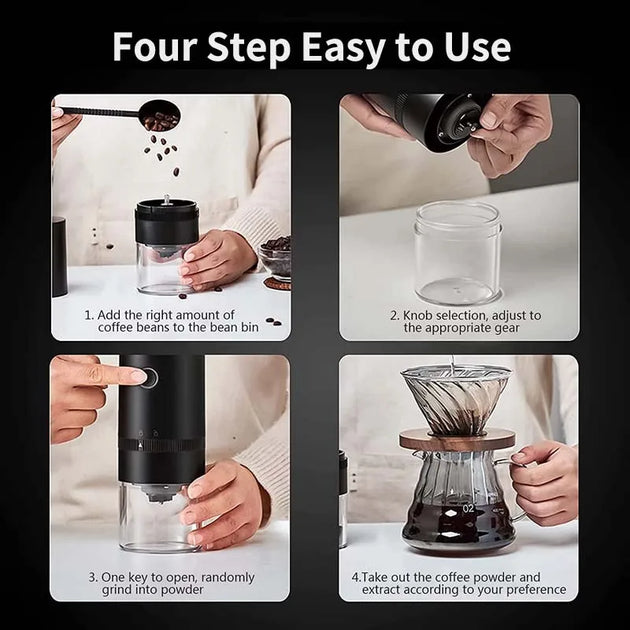 HiPiCok Electric Coffee Bean Grinder Type-C USB Charge Mini Portable Automatic Coffee Bean Mill Grinder for Espresso Drip Coffee