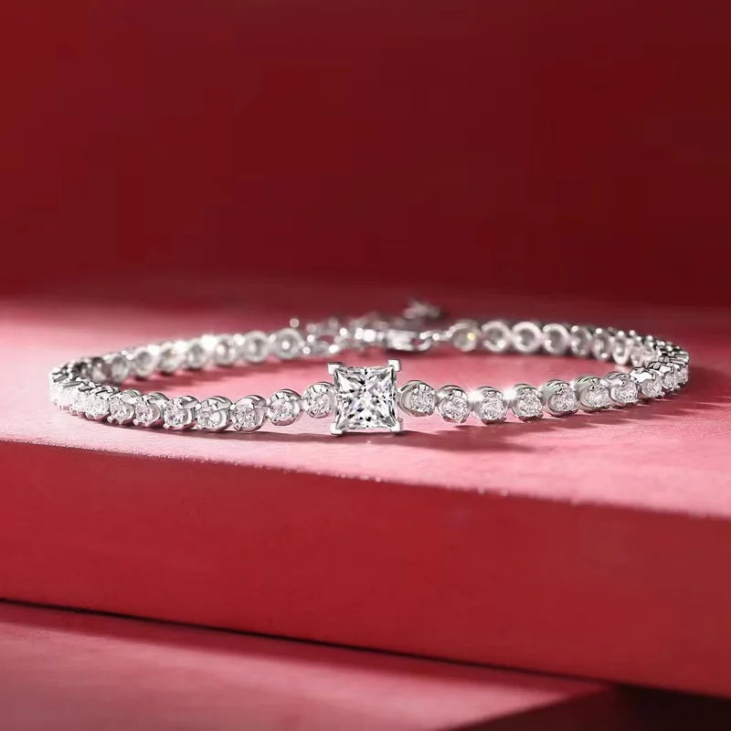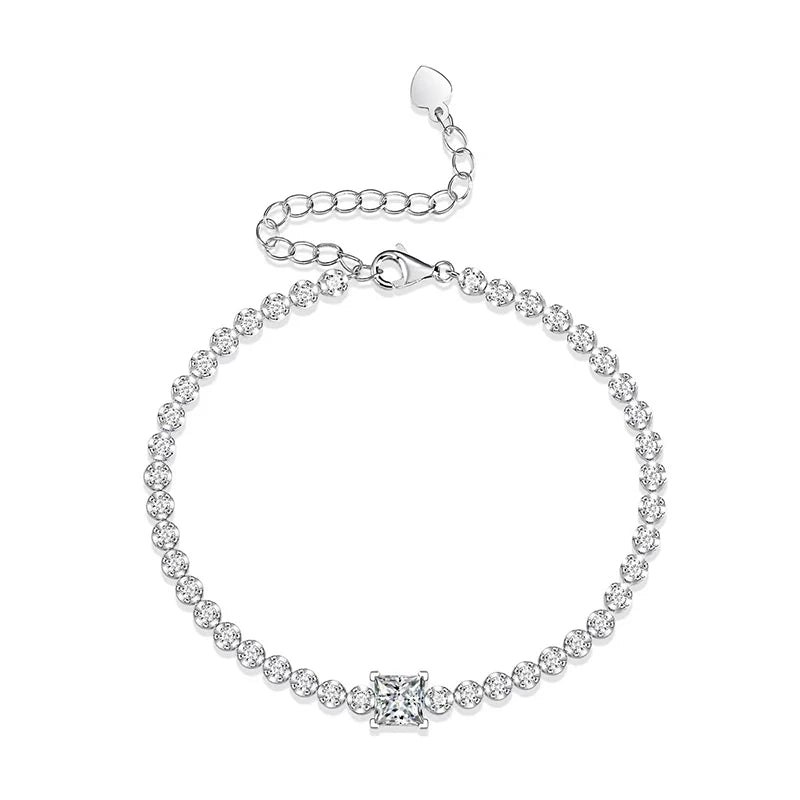 925 Sterling Silver 5.5mm D Color VVS1 Princess Moissanite Tennis Bracelets for Women Fine Jewelry Charm Bracelets Bangle Gift