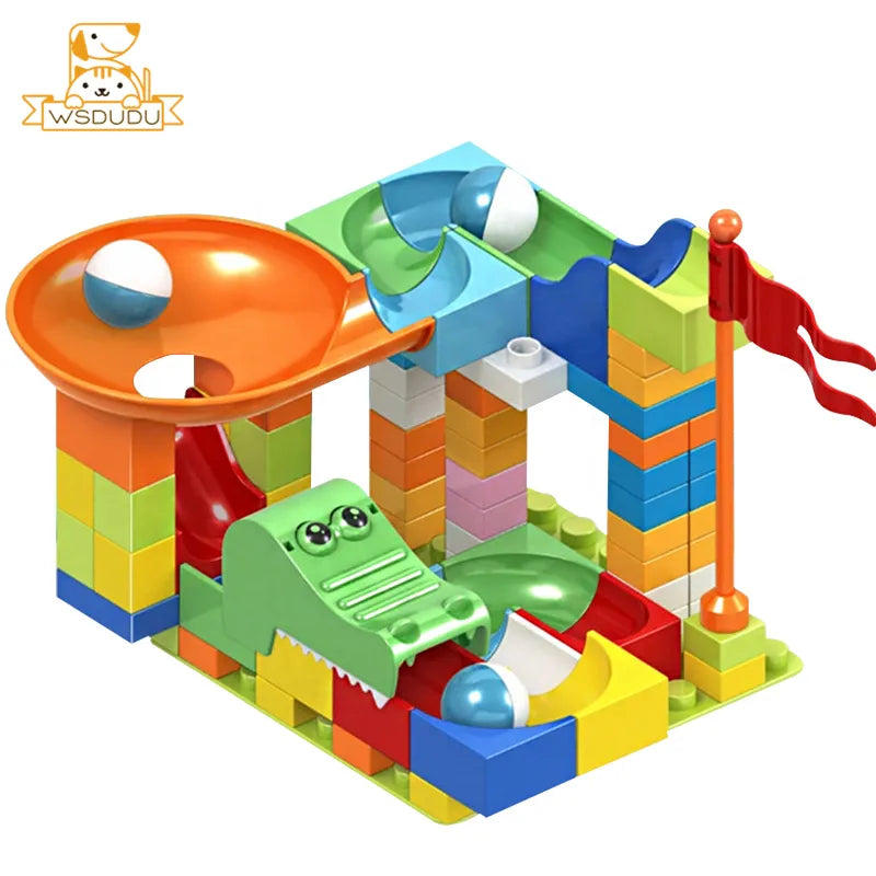 Slide Marble Balls Building Blocks Animal Dinosaur Race Run Track Model Construction Stack Big Bricks Game Puzzle Toy Child Gift
