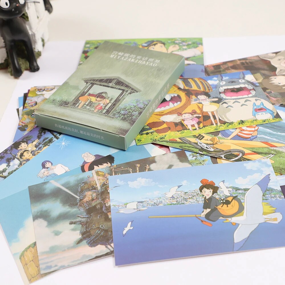 30Sheets Kawaii Japanese Hayao Miyazaki Greeting Card Totoro Postcard Birthday Gift Card Message Card Letter Envelope Card