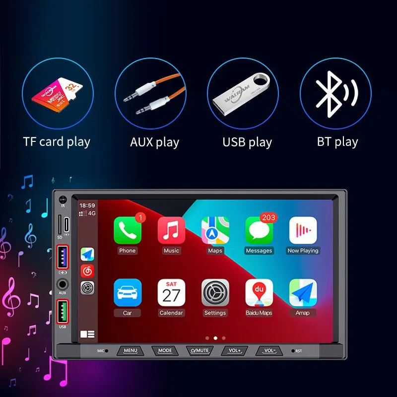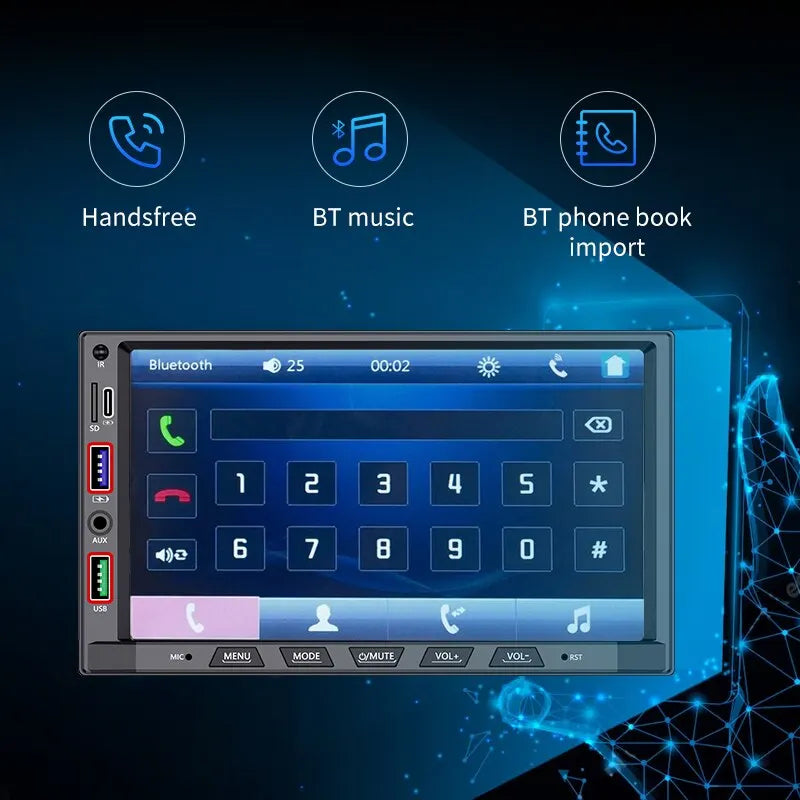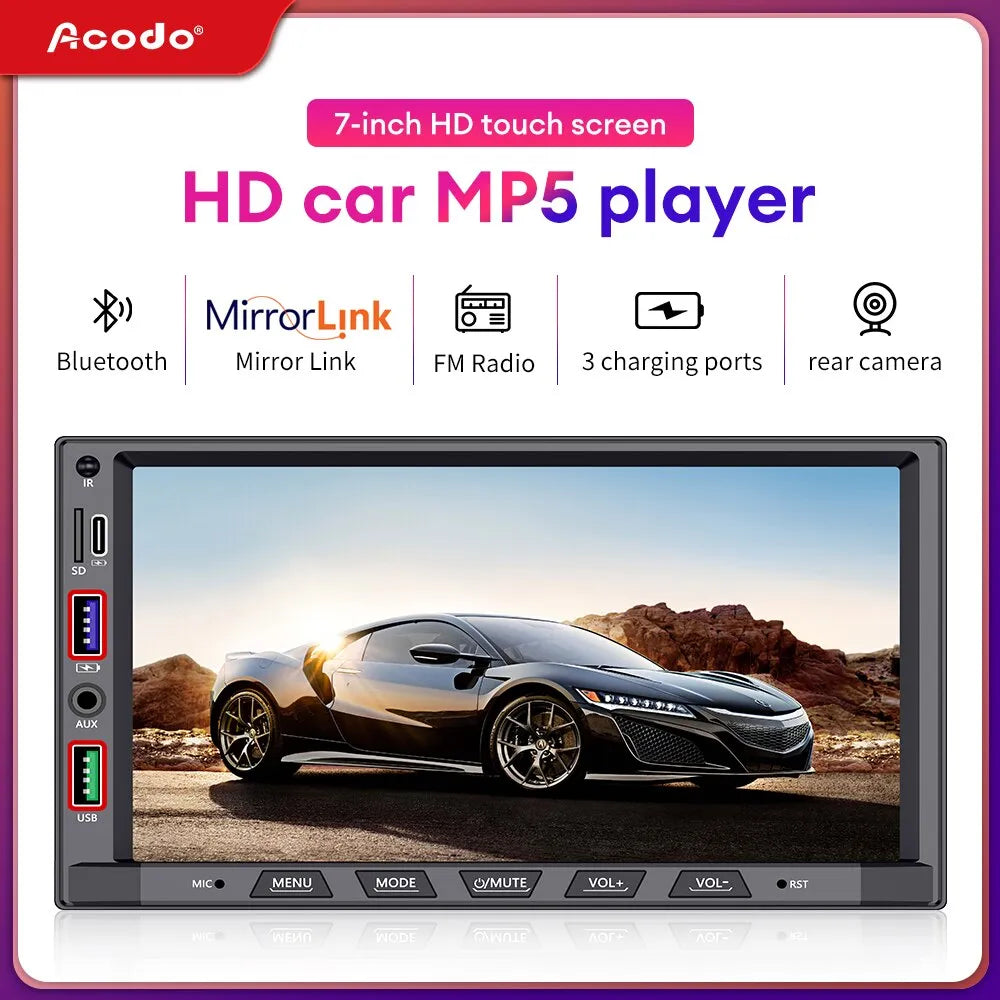 Acodo Car MP5 Player 7'' 2Din Radio Touch Screen Automotive BT FM TF Mirror Link Monitor Aux SD 3 Charging Ports Radio Stereo