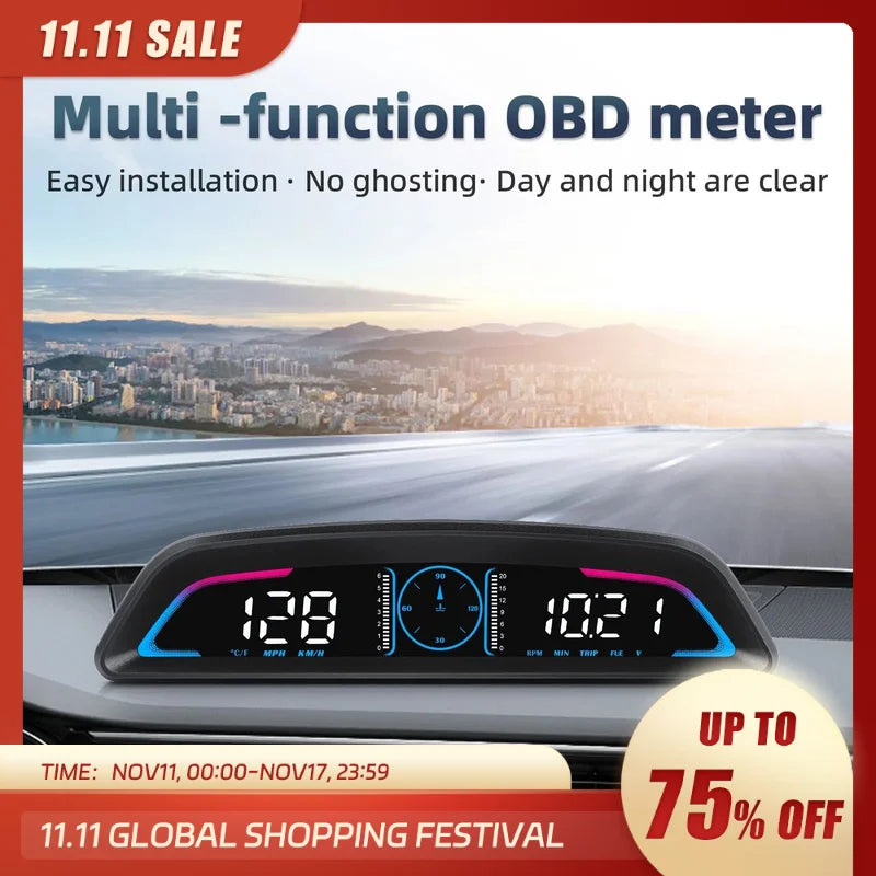 G3 / B3 Head Up Display OBD2 GPS Smart Car HUD Digital Speedometer Security Alarm RPM Water Temperature Tachometer Clock