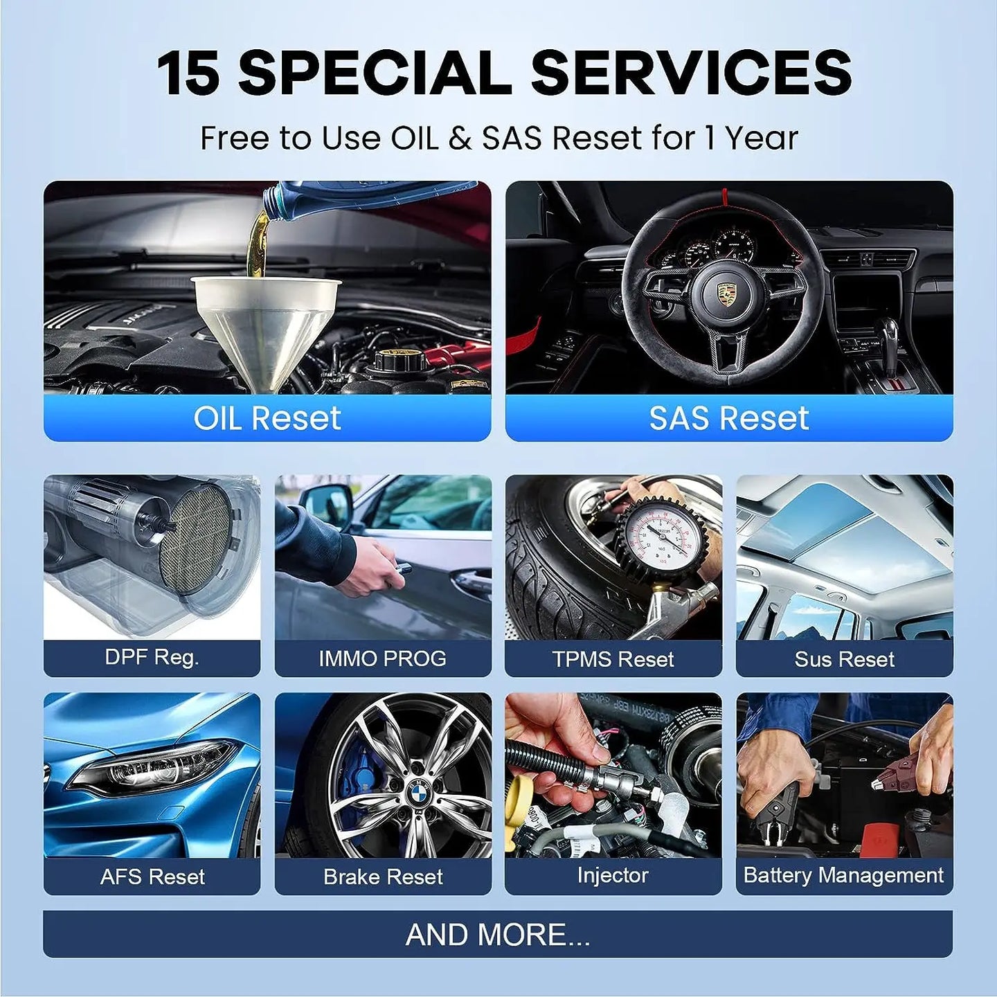 This OBD2 scanner is specially designed to provide you with quick access to the vehicle systems for various scheduled service and maintenance performances.There is some commonly-used special reset services are listed for your reference: