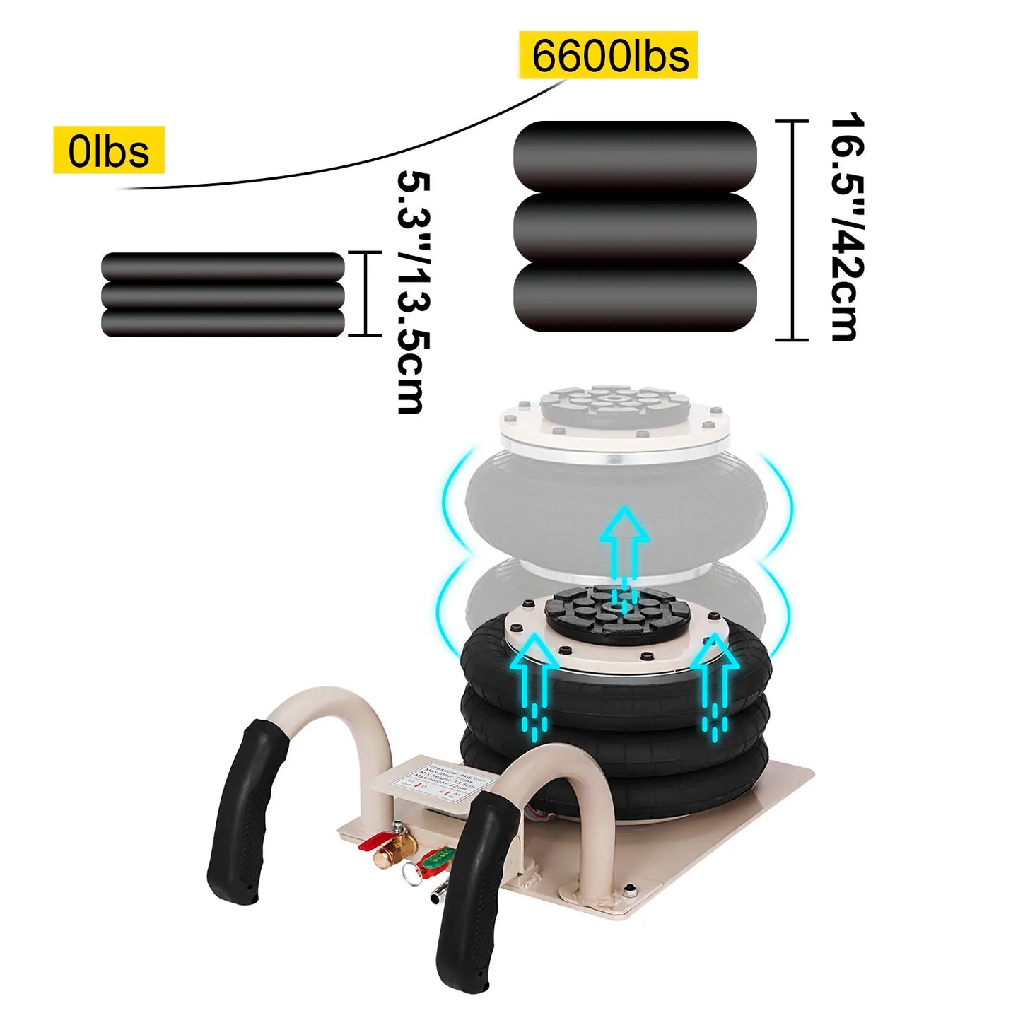 VEVOR 2 / 3 Ton Car Jack Double / Triple Bag Air Jack Pneumatic Jack Fast Lifting Height 30 / 40CM Van SUV Car Lift Repair Tool