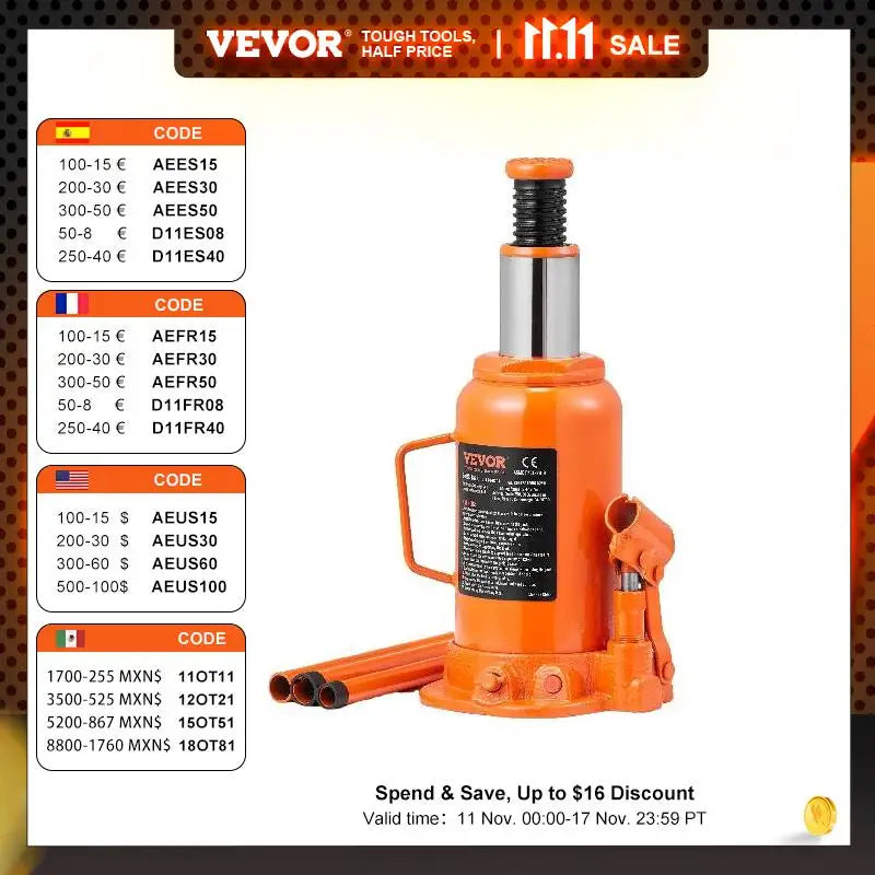 VEVOR Hydraulic Bottle Jack 20 Ton/44092 LBS All Welded Bottle Jack for Car Pickup Truck RV Auto Repair Industrial Engineering