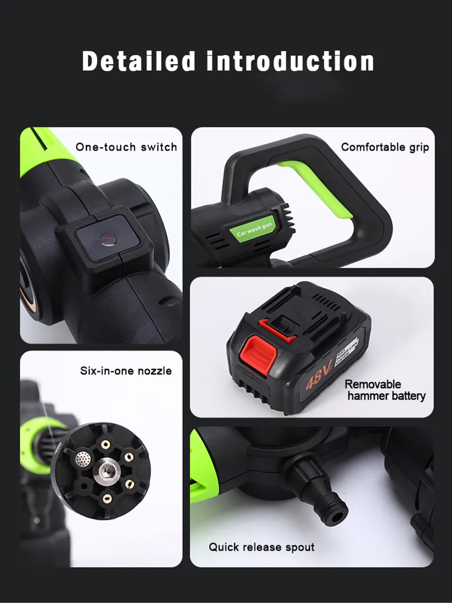 120Bar Brushless Electric High Pressure Cleaner Washer Spray Water Gun 21V 4.0A Battery Cordless Car Wash Gun Cleaning Machine
