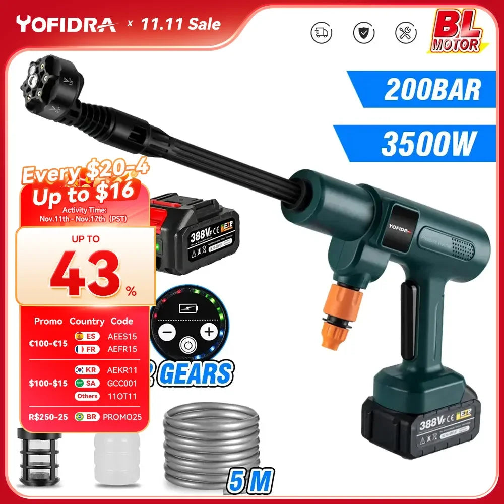 200Bar 3500W Brushless Electric High Pressure Washer Cordless Car Washing Spray Gun for Makita 18V Battery Garden Water Gun