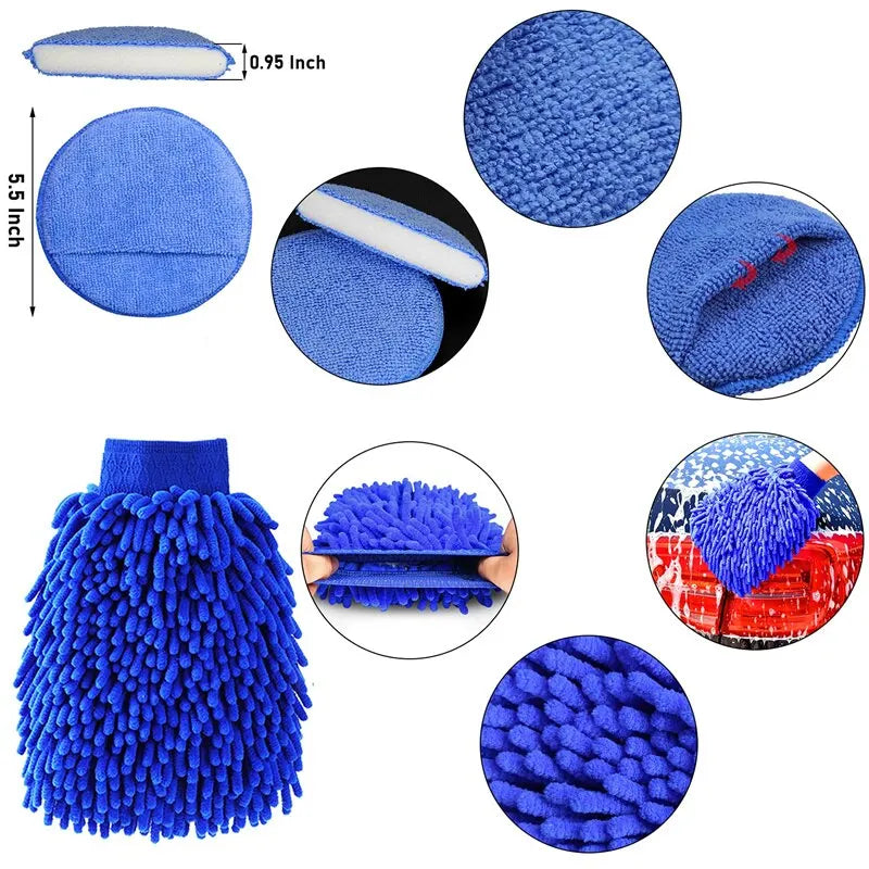 5 X Car Detailing Brush Kit (Different Size), 2 X Microfiber Soft Wax Applicator Pads, 1 X Car Washing Mitt, 1 X Car Dashboard Mini Brush