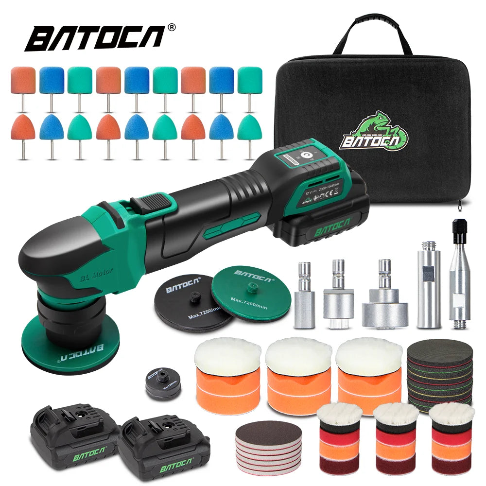BATOCA Cordless Car Polisher Machine Set 12V RO/DA Micro Scratches Killer Brushless Motor Polisher with Detail Sponge Wool Pads