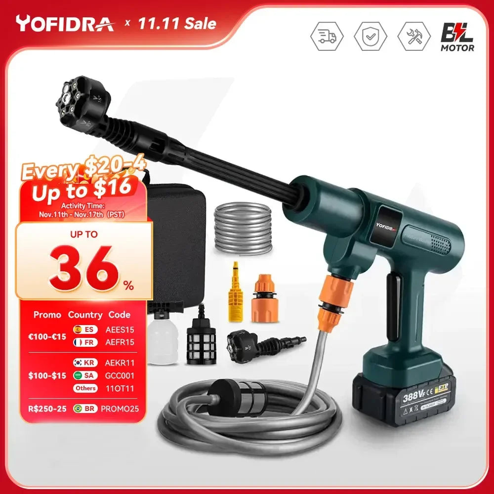 Yofidra 200Bar 3500W Brushless Electric High Pressure Washer 6-in-1 Car Washing Garden Water Gun for Makita 18VBattery Spray Gun