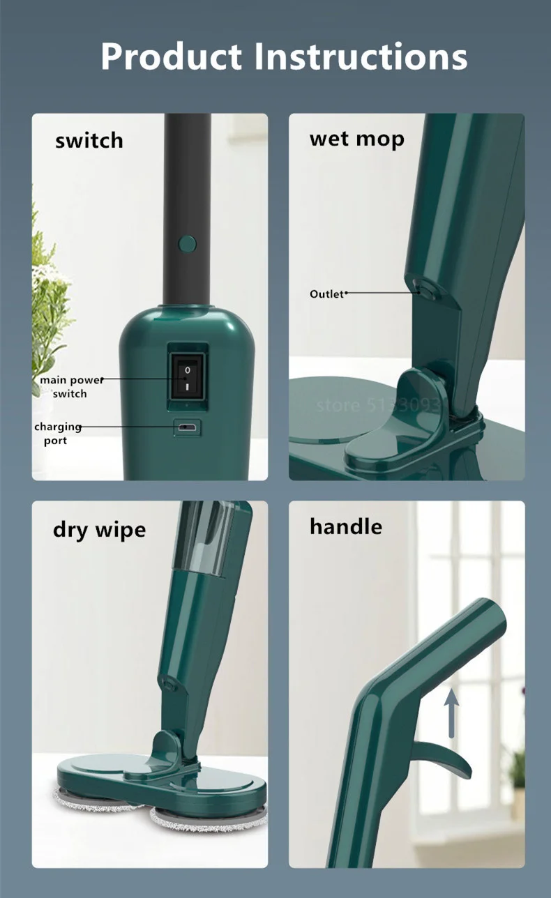 Floor Mop With Sprayer For Cleaning Handheld Wireless Rotary Electric Mop Floor Cleaning Chargeable Home Appliance