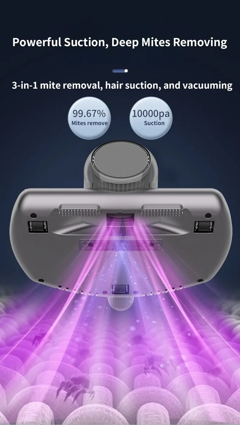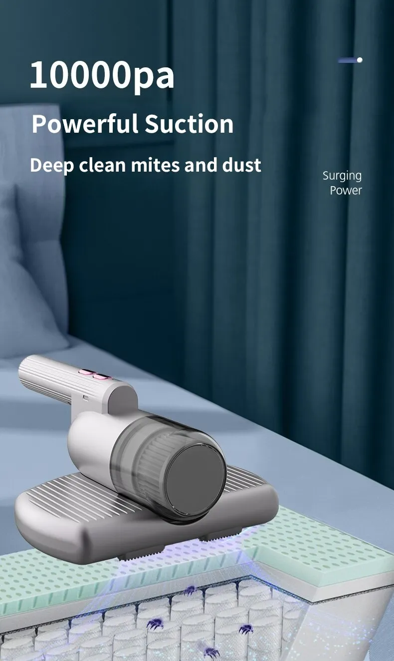 Wireless Vacuum Mites Remover Ultraviolet Sterilization Transparent Reusable Dust Box Design Powerful Suction HEPA Filter Deep Mites Cleaning
