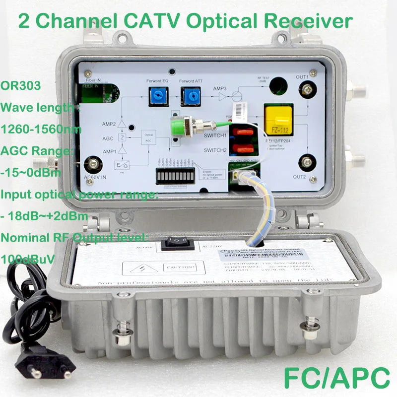 New AGC Optical Receiver Two Output Cable TV Digital Analog Signal Ultra-Low Receiving CATV Optical Transmission Equipment