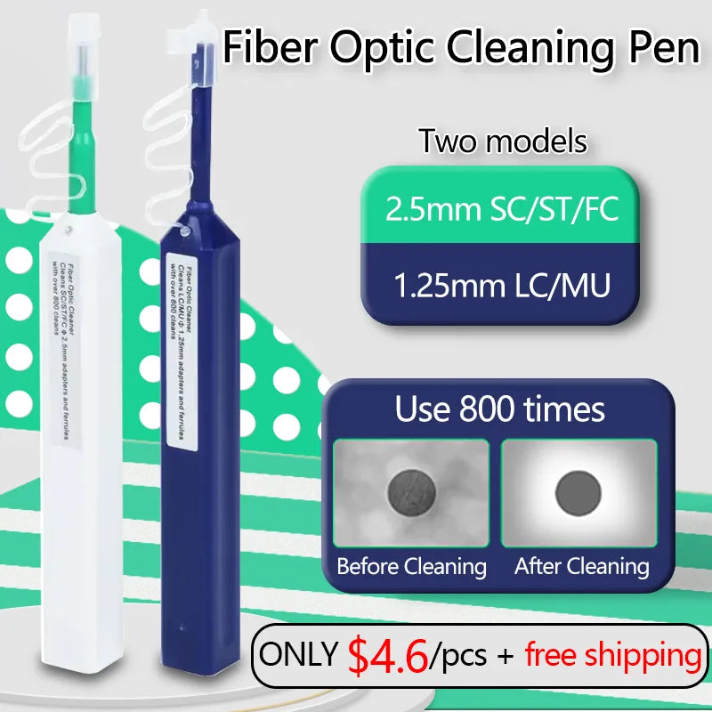OPTFOCUS 10 slot Fiber Connector Cleaning Tools 800 times LC SC FC 1.25 2.5mm Fiber Cleaner Pen Stick Kit for Optical Adapter