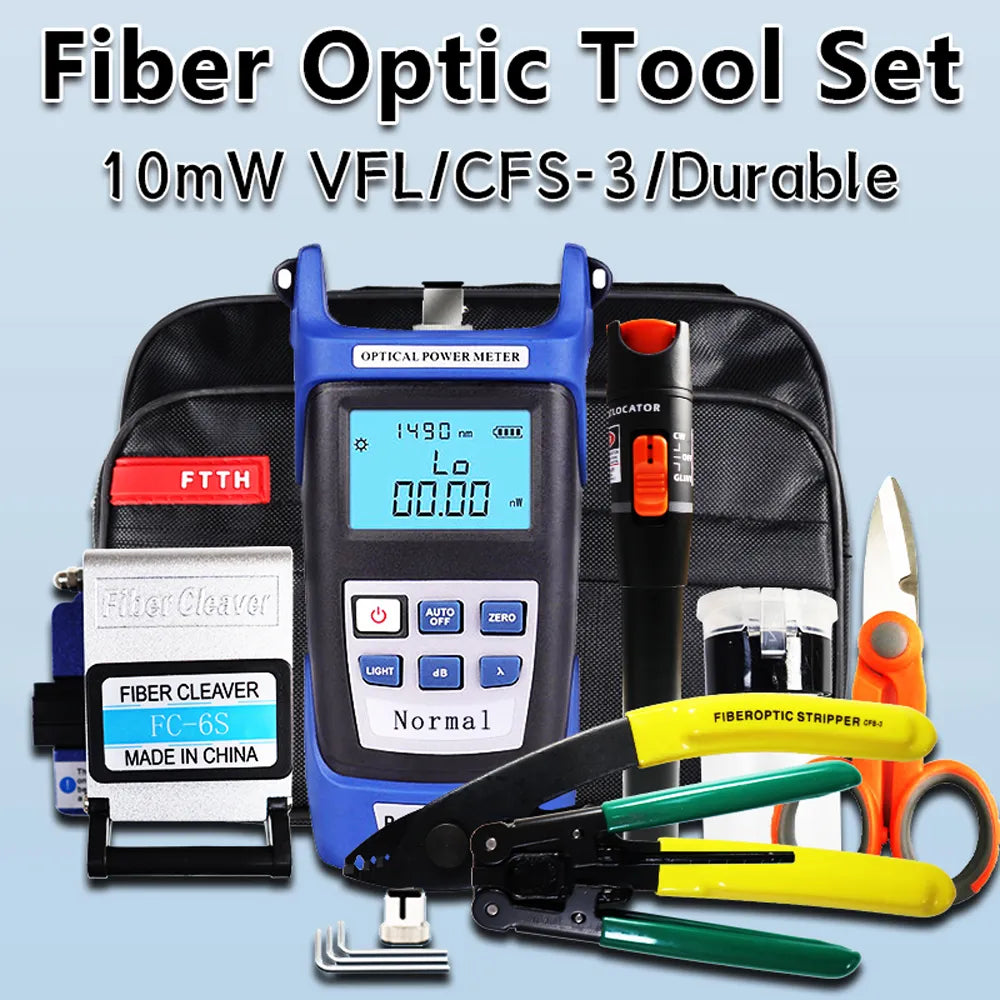 OPTFOCUS 19pcs Fiber Optic Tool Kit 10mW Visual Fault Locator FTTH Tools Fiber Power Meter Optical Bag Fiber Cleaver