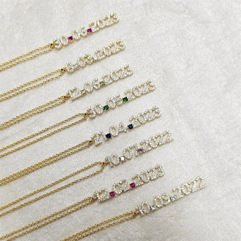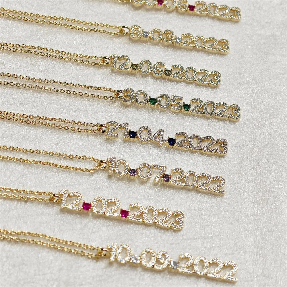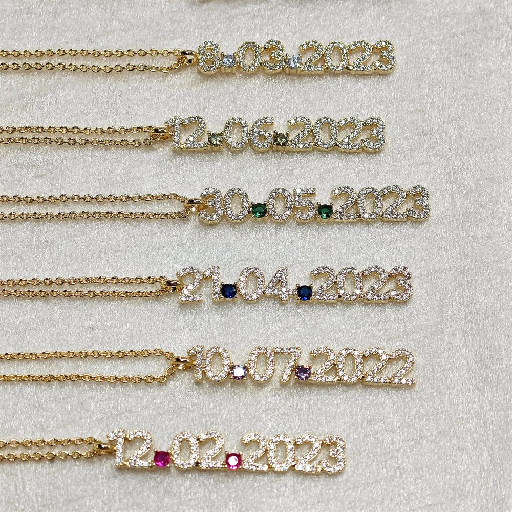 2023 Personalized Anniversary Date Necklace Custom Birthstone Zircon Number Necklace For Women Birthday Jewelry Gifts