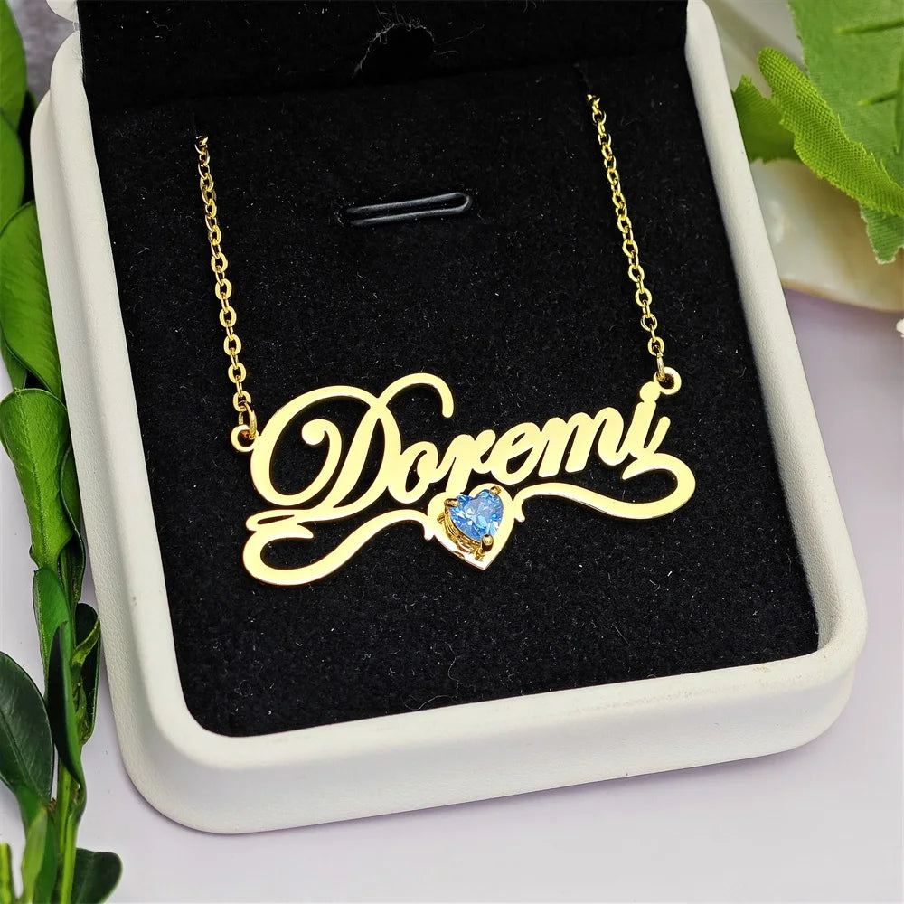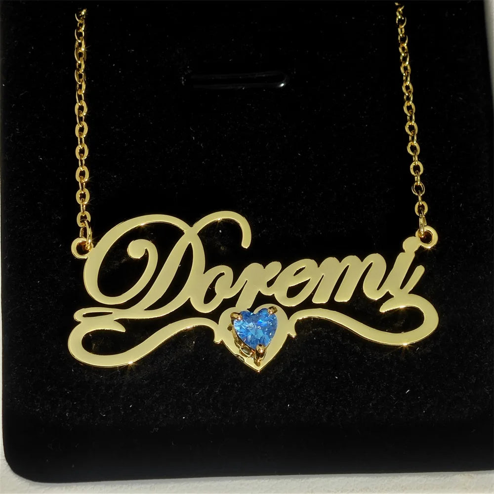 2023 Personalized Star Steel Name Birthstone Necklace Custom Name Heart Zircon Necklace For Women Birthday Jewelry Gifts