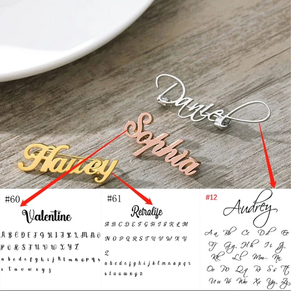 Note:Friends, after the payment slip, please send us the name you want to customize, and then select the desired font type (for example: Alice+#01) so that we can produce it.