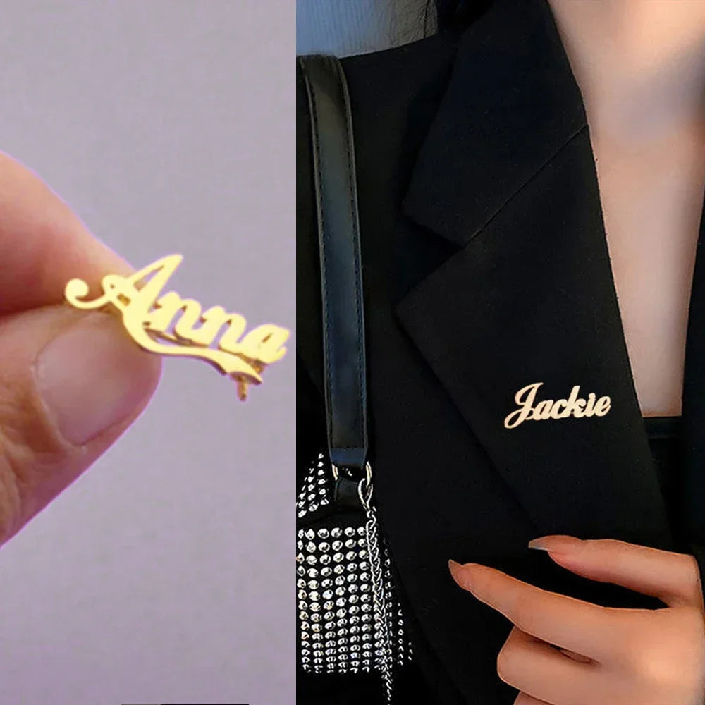 Custom Name Brooch for Women Men Personalized Stainless Steel Customized Logo Pins Nameplate Brooch Women Wedding Jewellery Gift