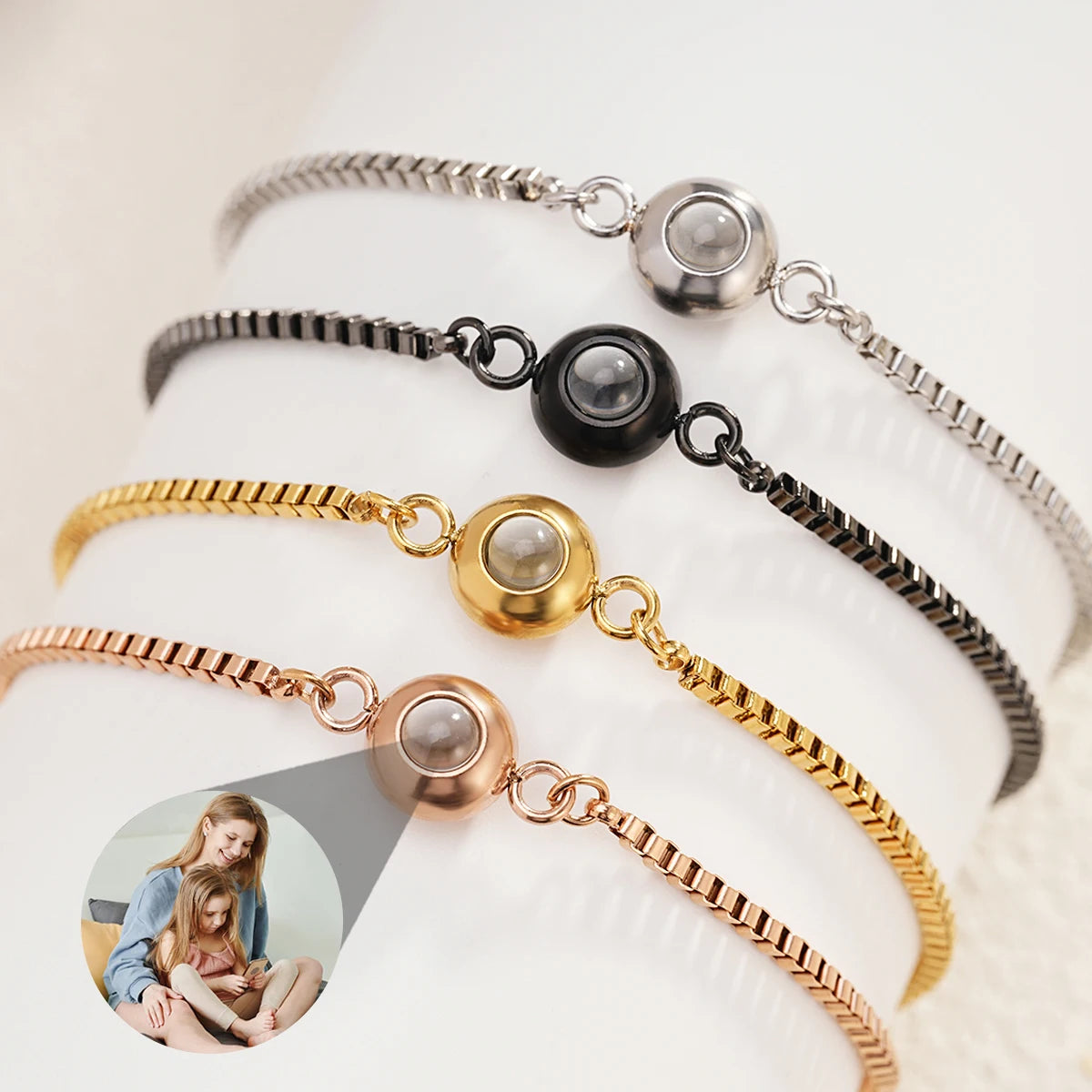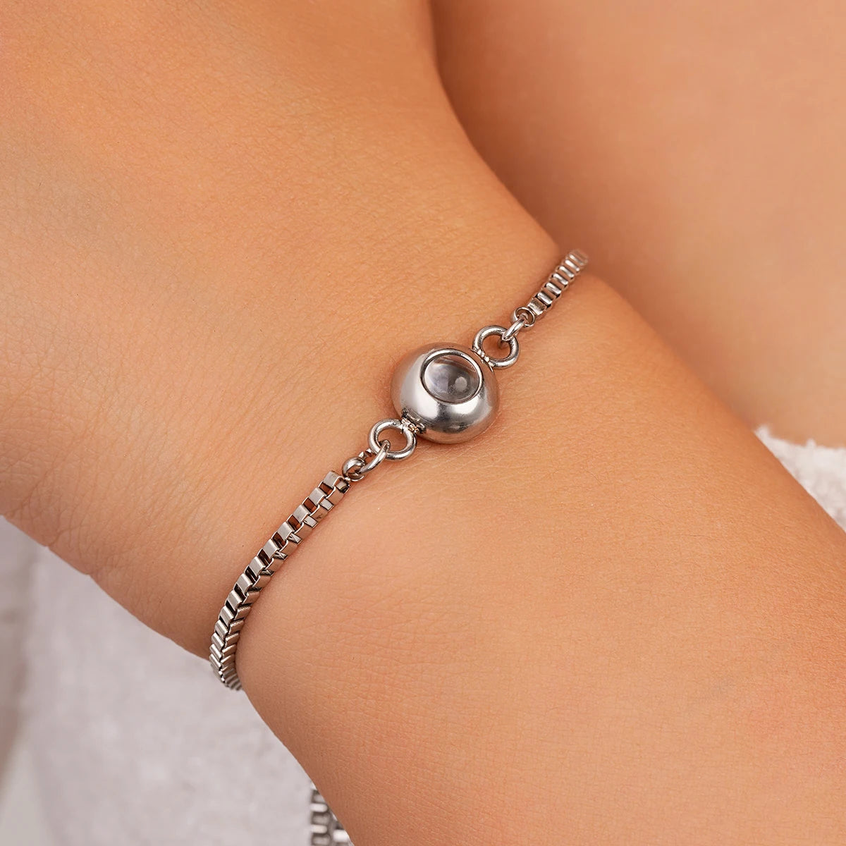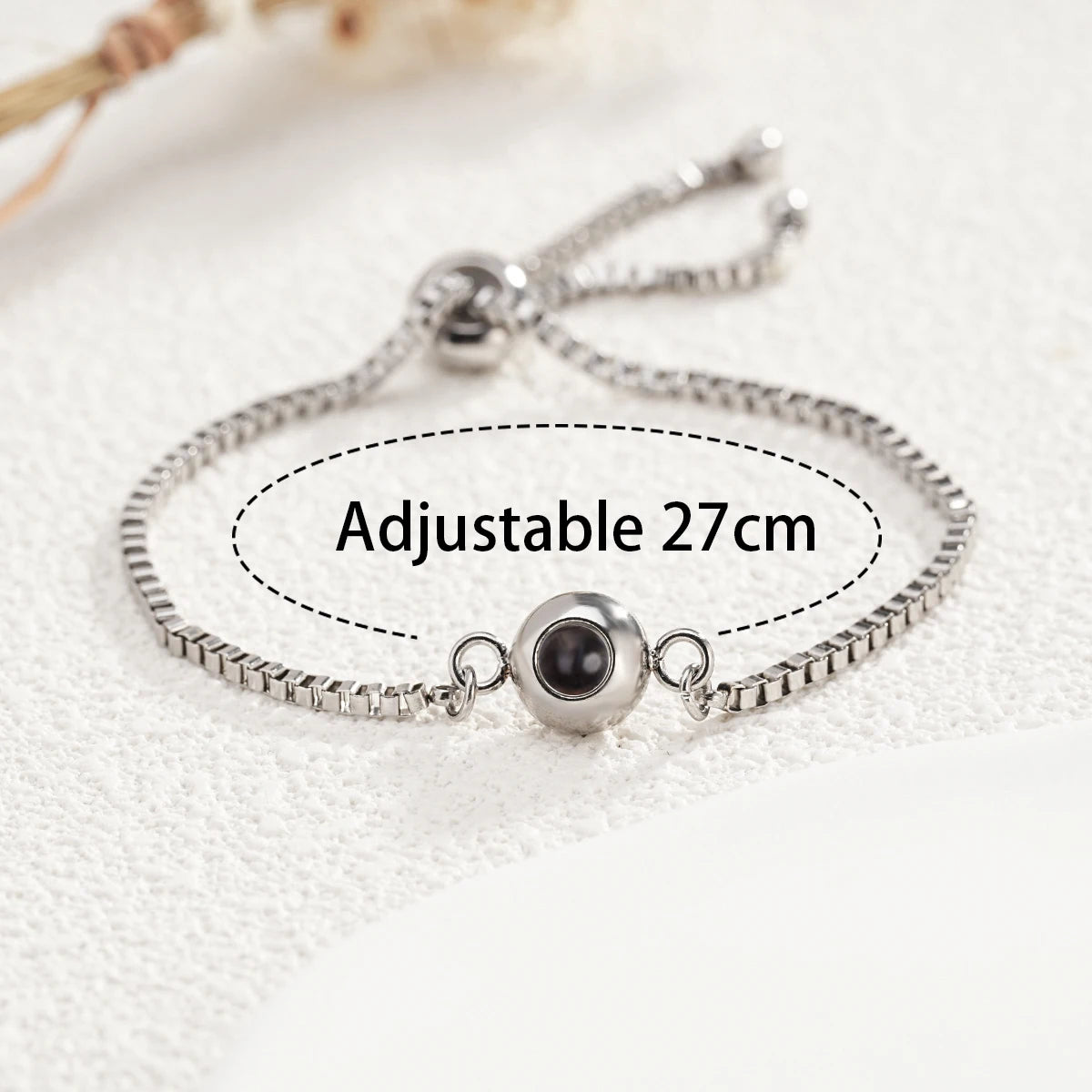 Custom Photo Bracelet Stainless Steel Box Chain Projection Bracelets with Picture Inside 100 Languages Projection Bracelet