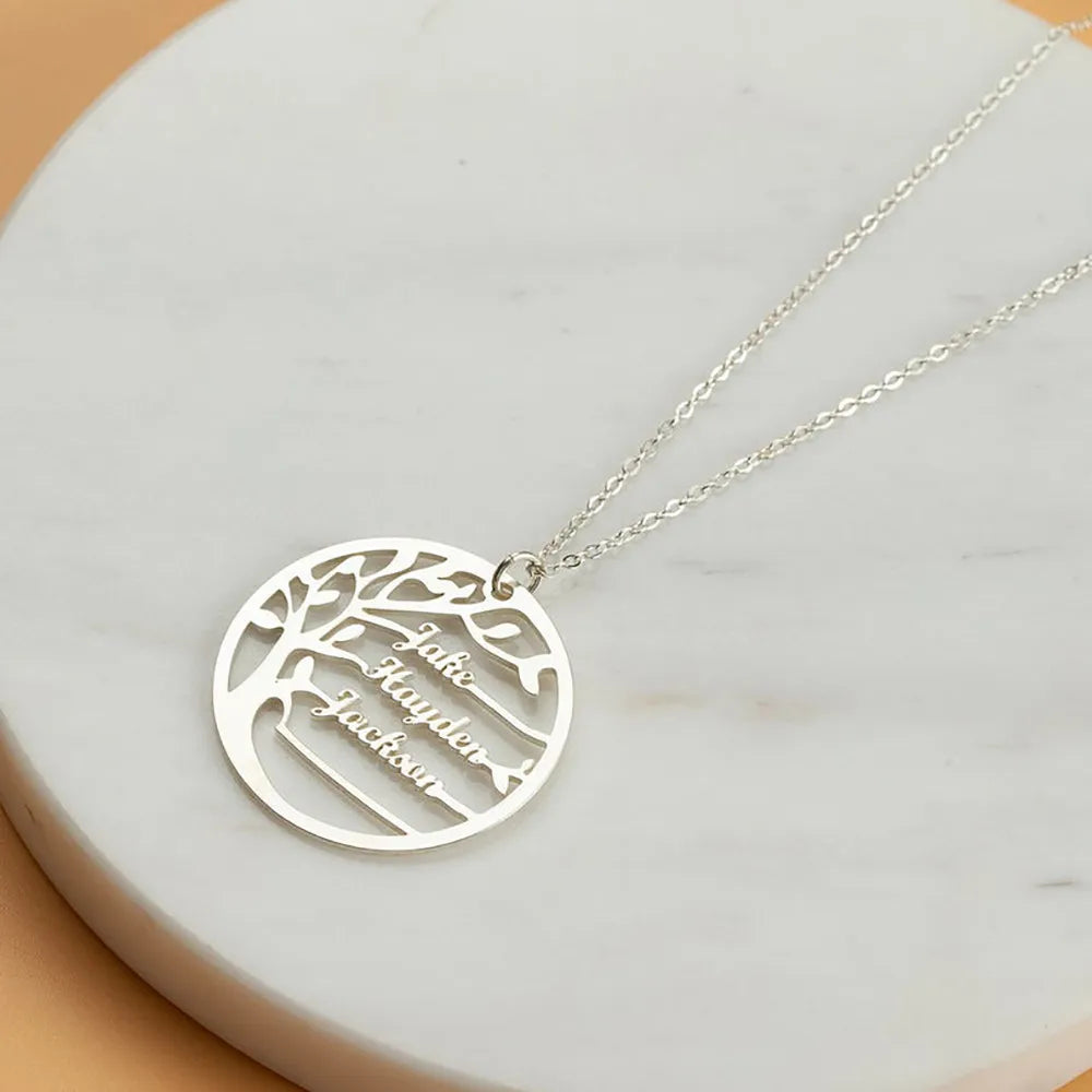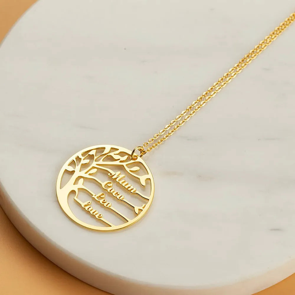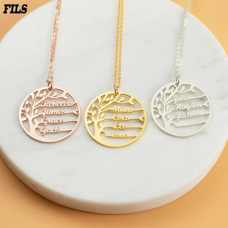 Custom Tree of Life Necklace for Women Stainless Steel Family 1-4 Names Round Pendant Necklaces Jewelry Parents Christmas Gifts