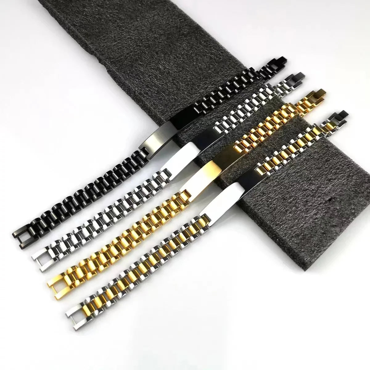 Gold Stainless Steel Mens ID Bracelets Free Engraving Laser Name Date Customize Gift 10mm Men's Watch Chain Father's Day Gift