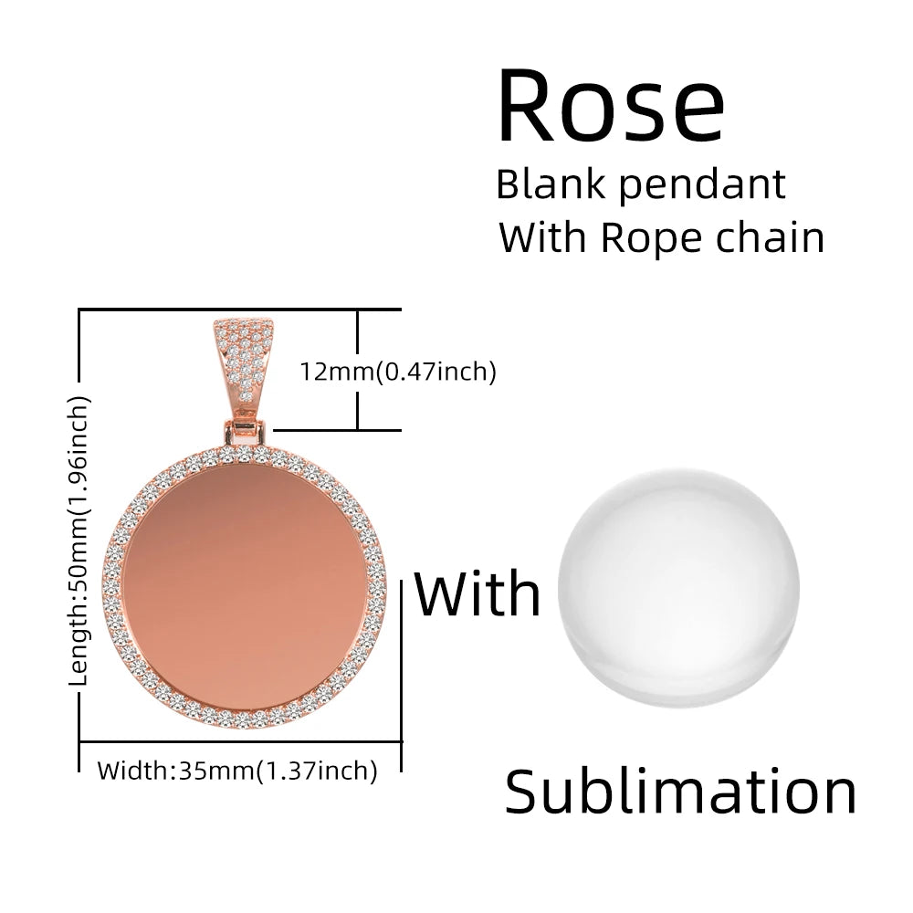 Ice Out DIY Photo Memory Medallions Pendant Necklaces Hip Hop Sublimation Cubic Zircon Round Pictures Charms Unisex Mens Jewelry