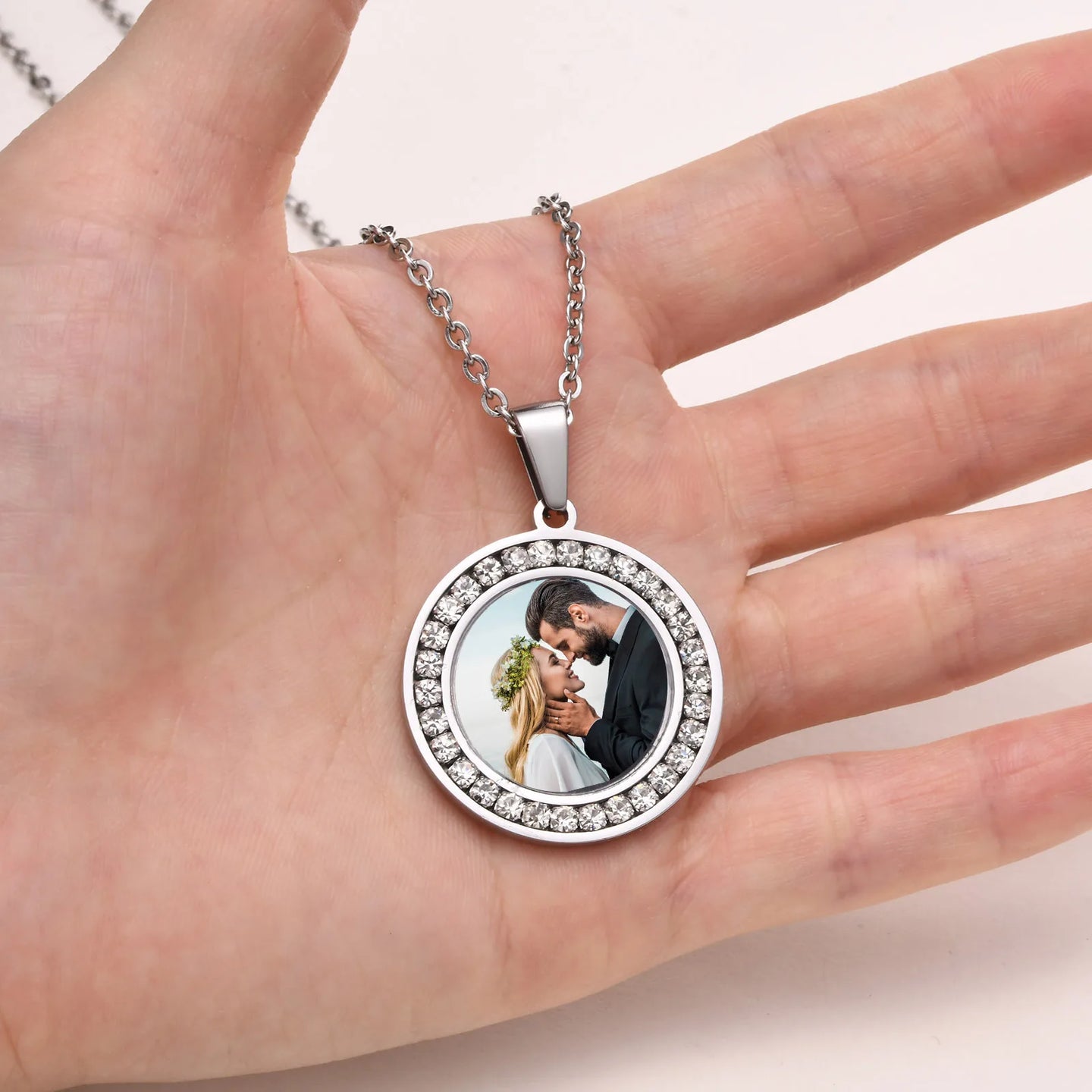 Personalize Engrave Name Round Free Customizable Photo of Family Necklaces, Picture Words Date Pendant, Keepsake Gifts Collar