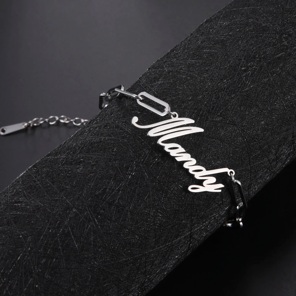 Sipuris Customized Name Bracelet Personalized Stainless Steel Rectangular Chain Letter Bracelet Unique Jewelry Family Gifts New