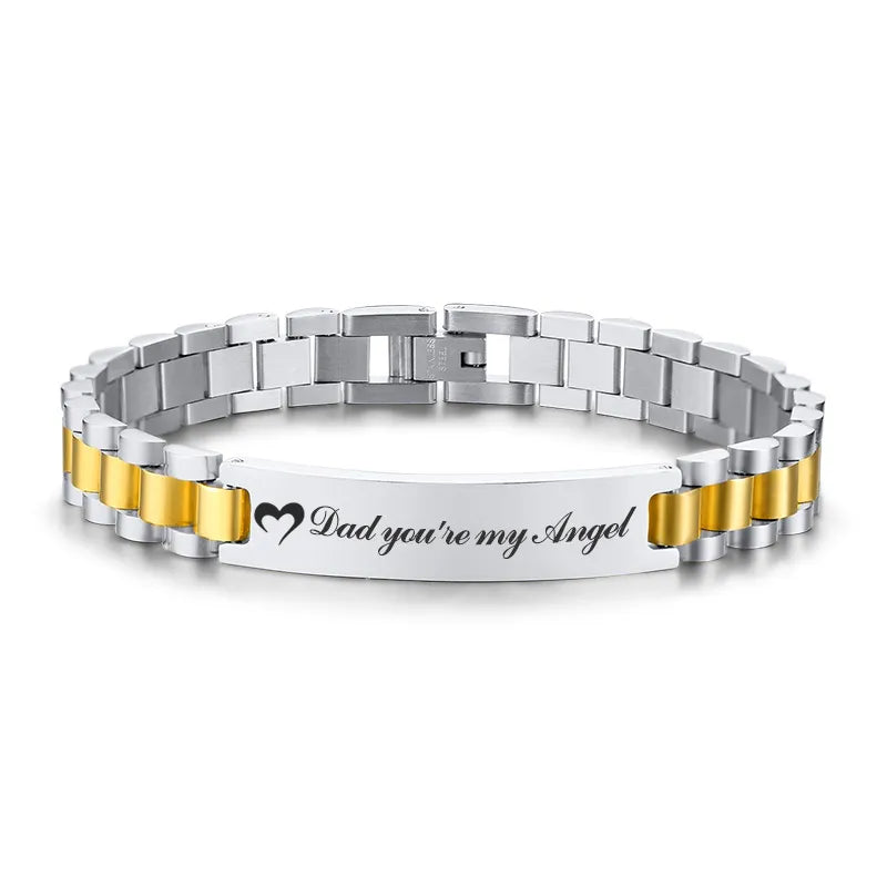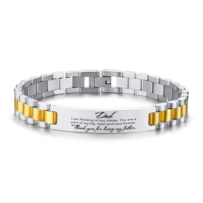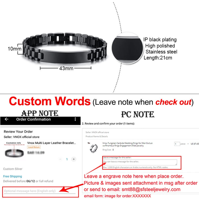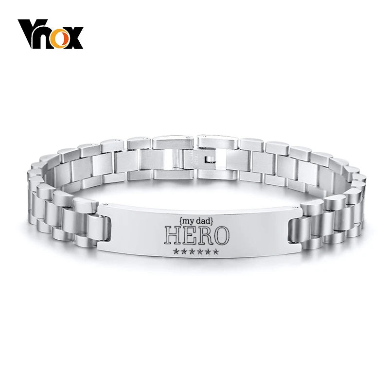 Vnox Customize TO DAD Bracelets for Men Glossy Stainless Steel Link Chain Engrave Thanks Quotes Casual Qualified Male Jewelry