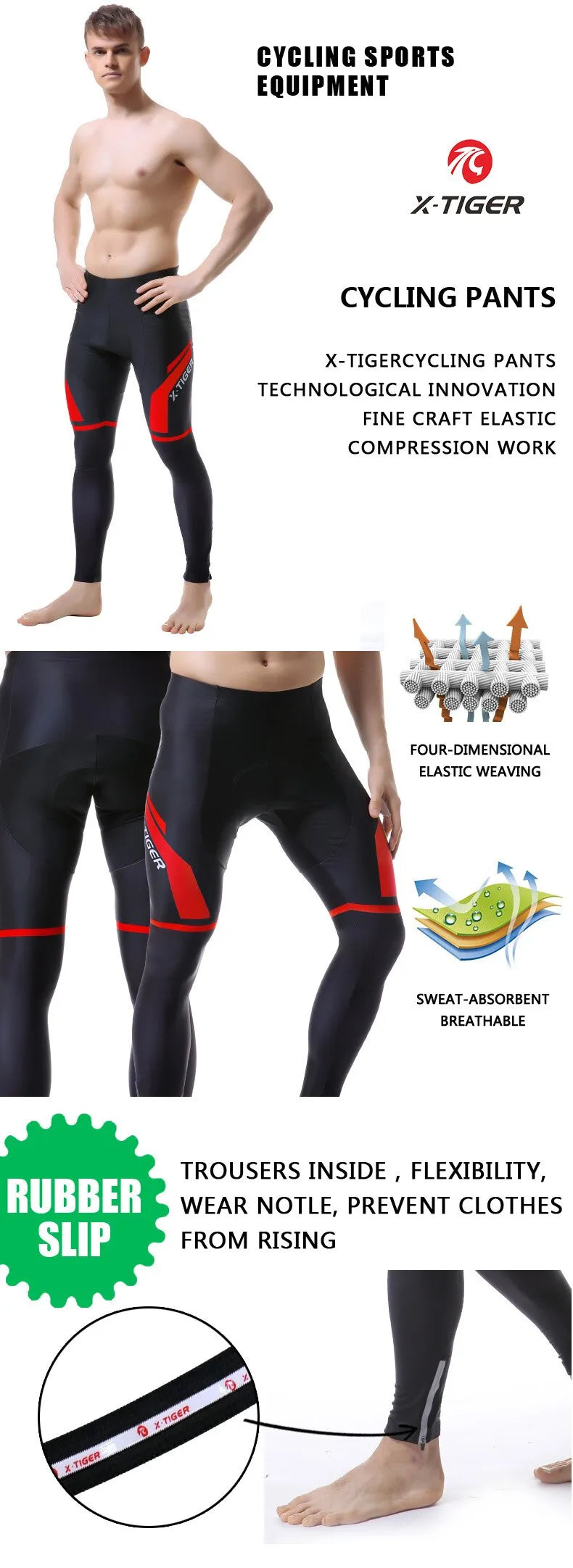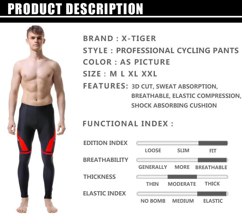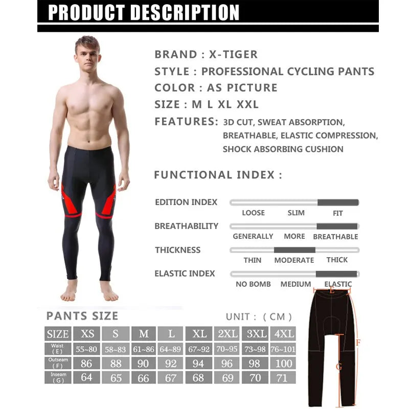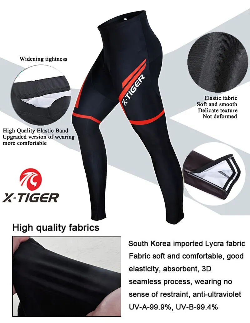 X-TIGER Cycling Pants Spring Autumn Coolmax Cycling Trousers with 5D Gel Pad Riding Bicycle Pants 100% Lycra Pantalon MTB