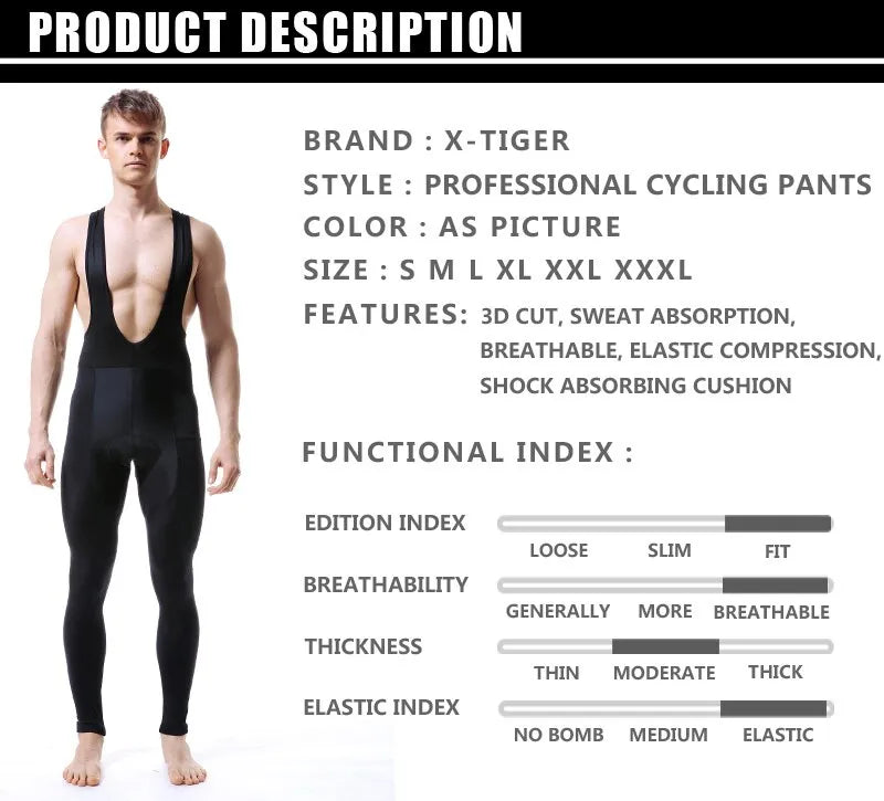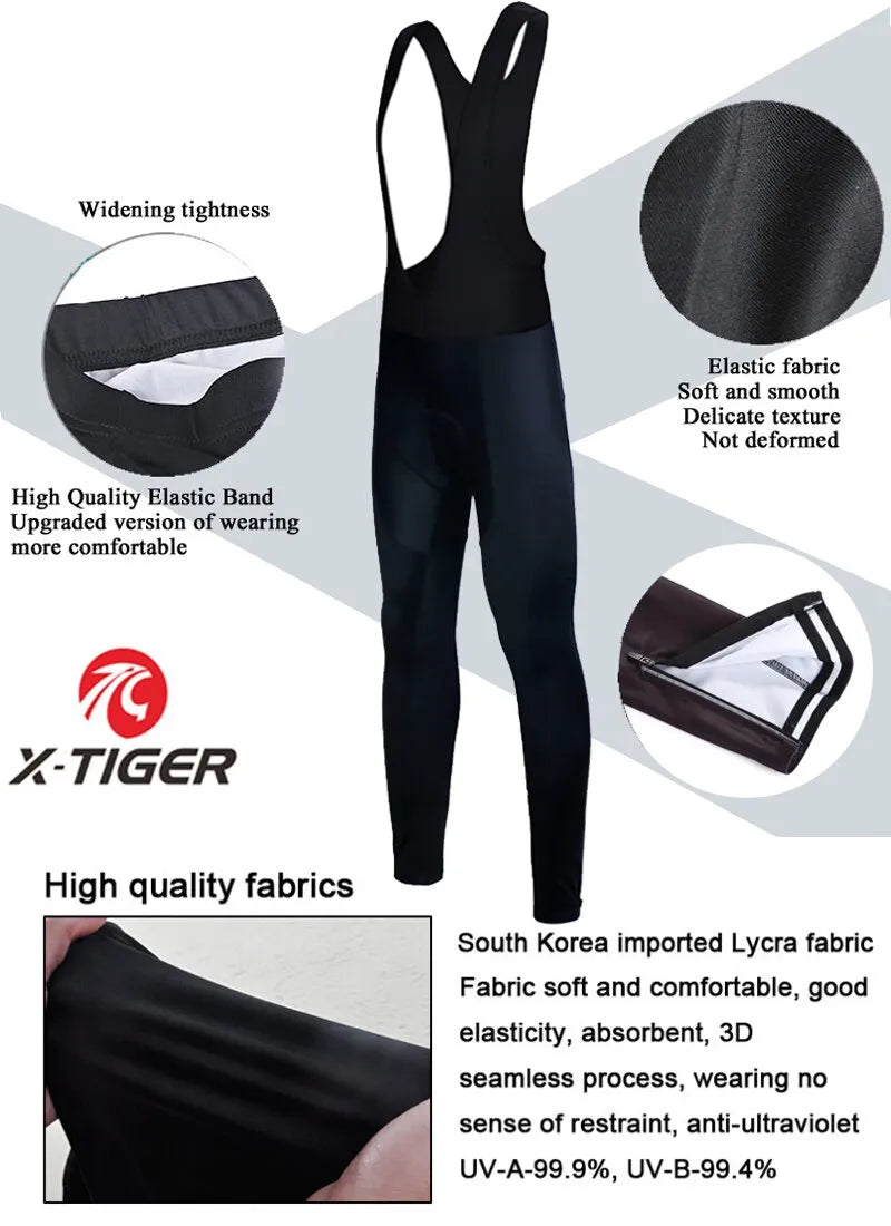 X-Tiger Whole Black 5D GEL Pad Pro Cycling Bib Pants MTB Bike Cycling Trousers Anti-sweat Quick-Dry Mountian Bike Bib Pants