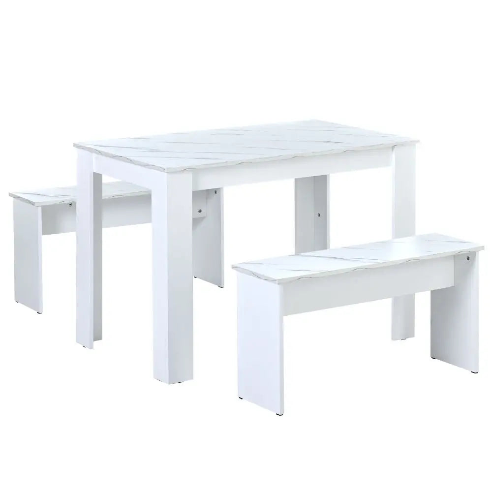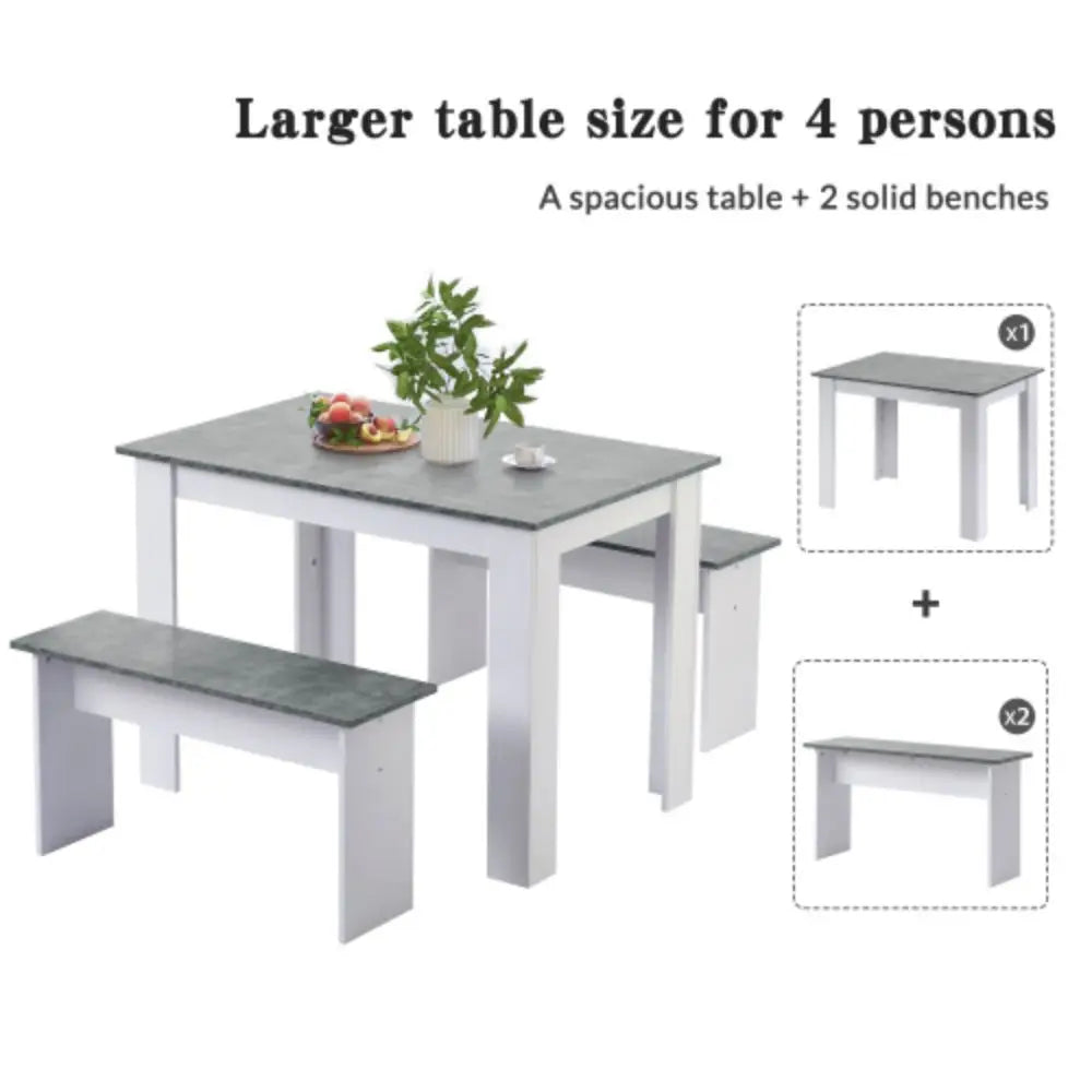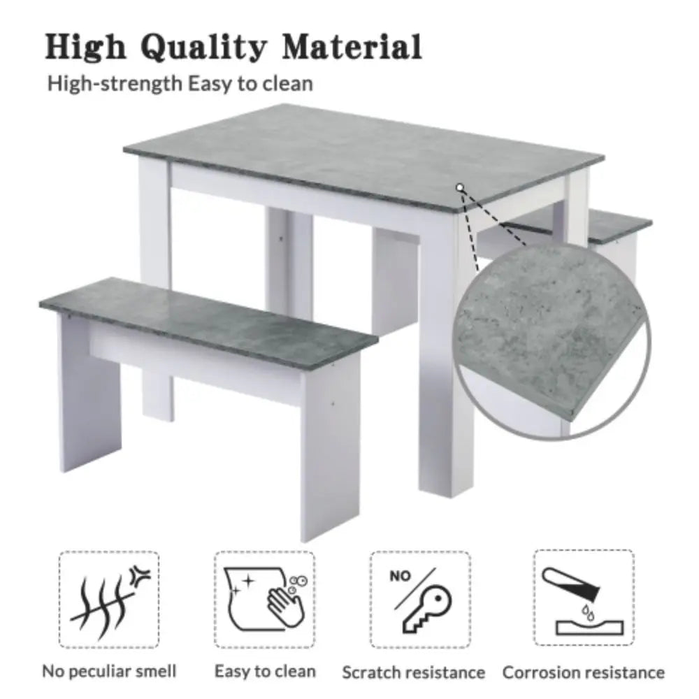 Dining Table with 2 benches Dining Table Set for Kitchen, Dining Room, Small Space Artificial Marble