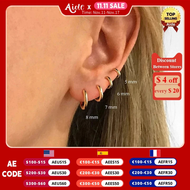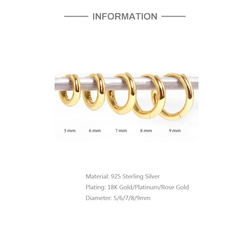 Aide 925 Sterling Silver Rose Gold Small Hoop Earrings For Women Girls Gift Wedding Engagement Party Gift Smooth Ear Bone Buckle