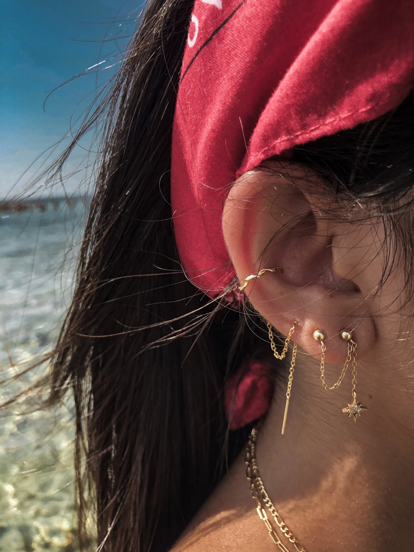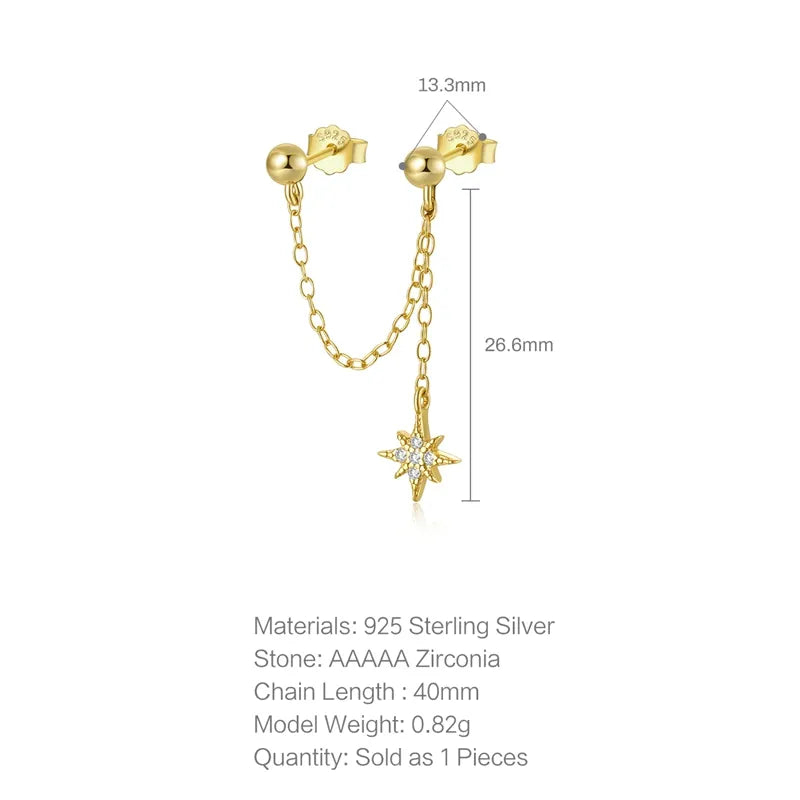 Aide 925 Sterling Silver Two Circle Hoop Earrings For Women Zircon Star Pendant Chain Tassel Double Huggie Earring Party Jewelry