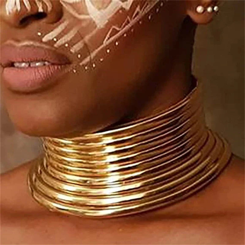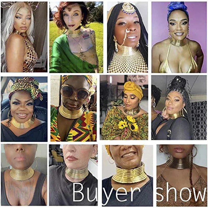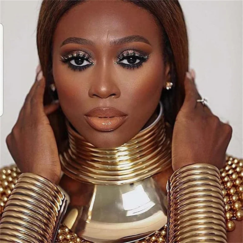 Liffly African Necklace Jewelry Sets Exaggerated Choker Necklaces Two-hand Bracelet Women Wedding Party Set Jewellery Halloween