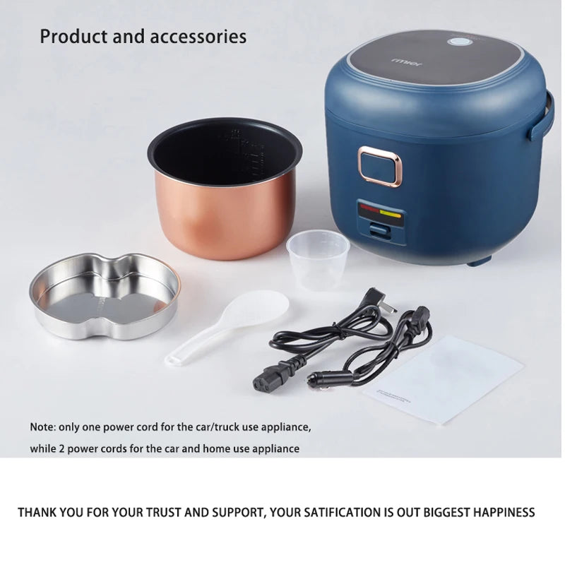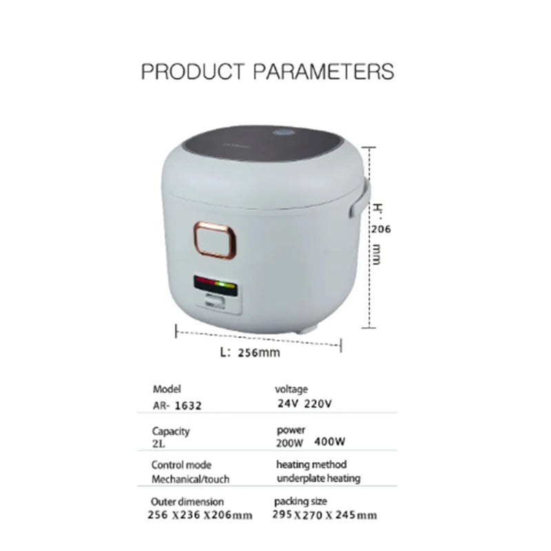 Arier Rice Cooker 2L 24V 220V Truck Home Dual Use Multi-functional Electric Home Appliance for Camping Travel Blue English Menu