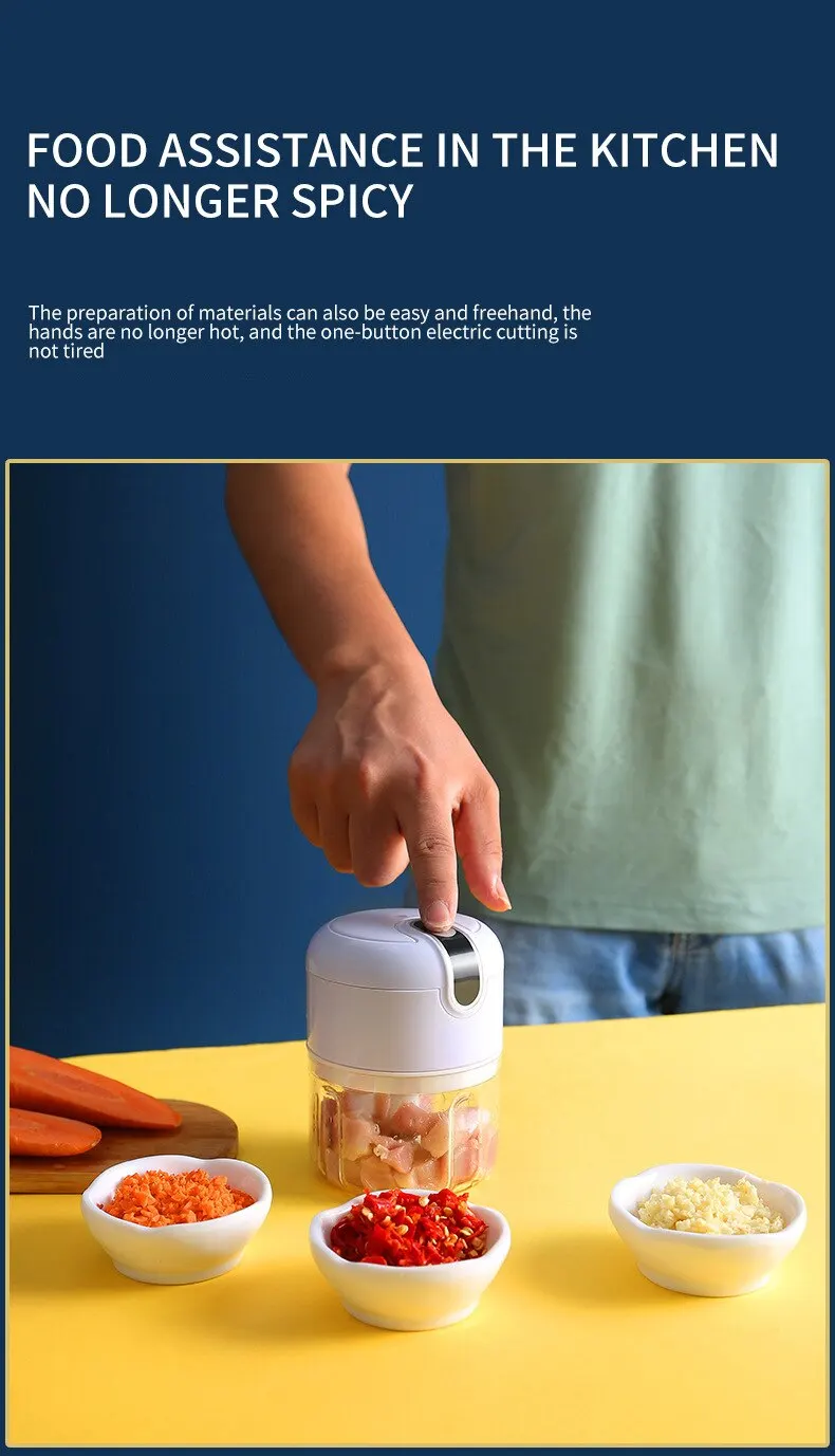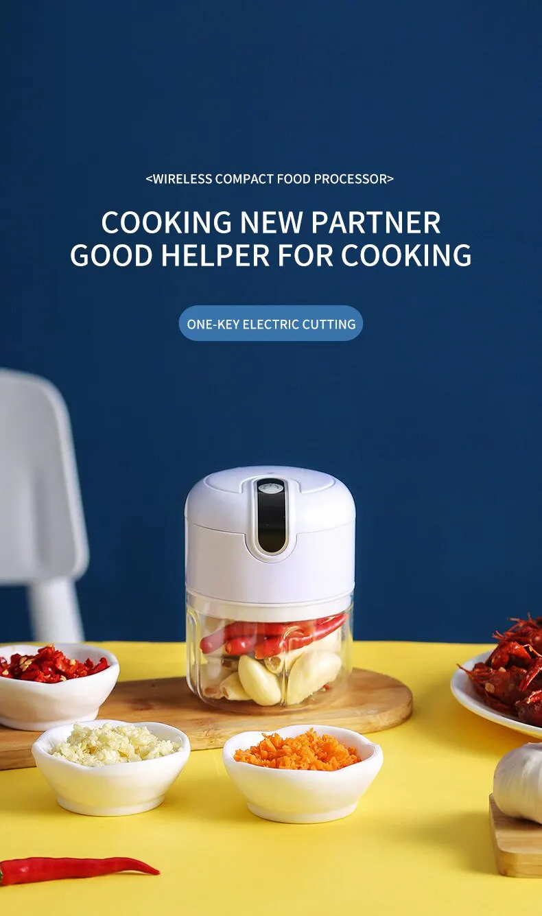 Electric mini garlic chopper is a great helper in the kitchen for everyone. You can use to chop nuts, ginger, garlic, onions and other vegetables.
