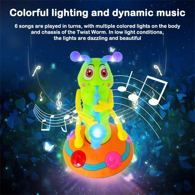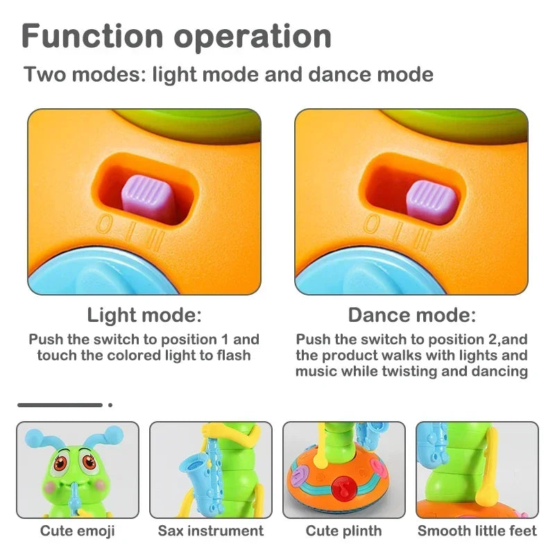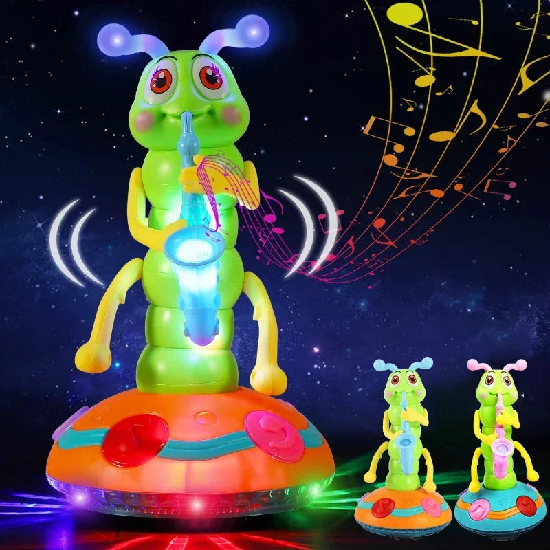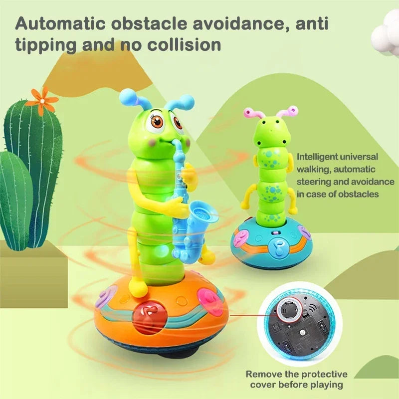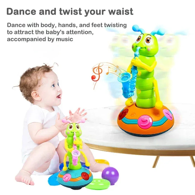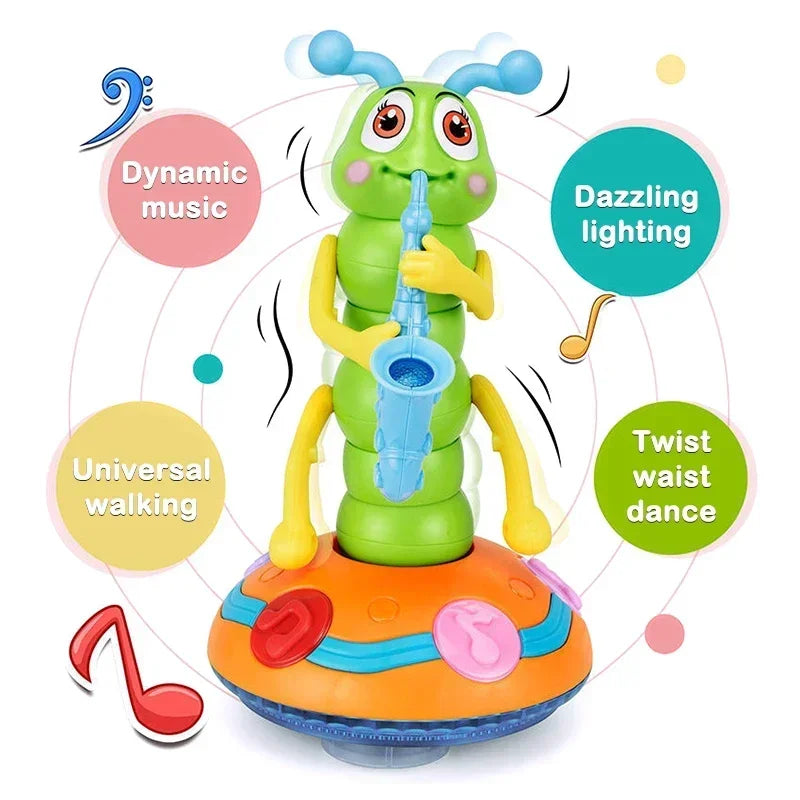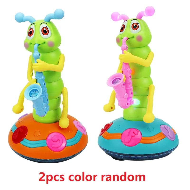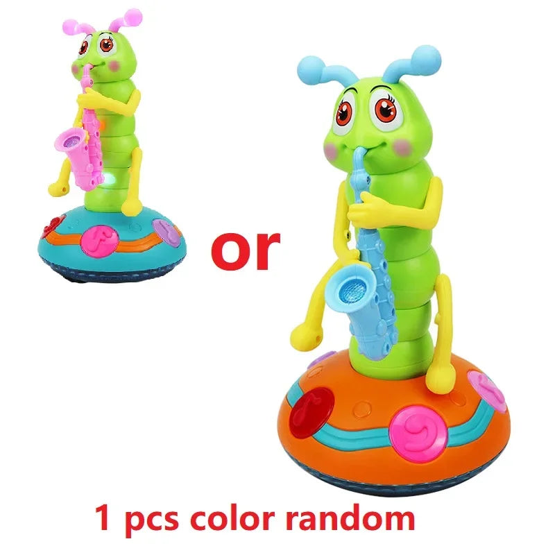 Dancing Saxophone Caterpillar Children's Electric Dancing Caterpillar Toys with Lighting and Music Baby Crawling Interactive Toy
